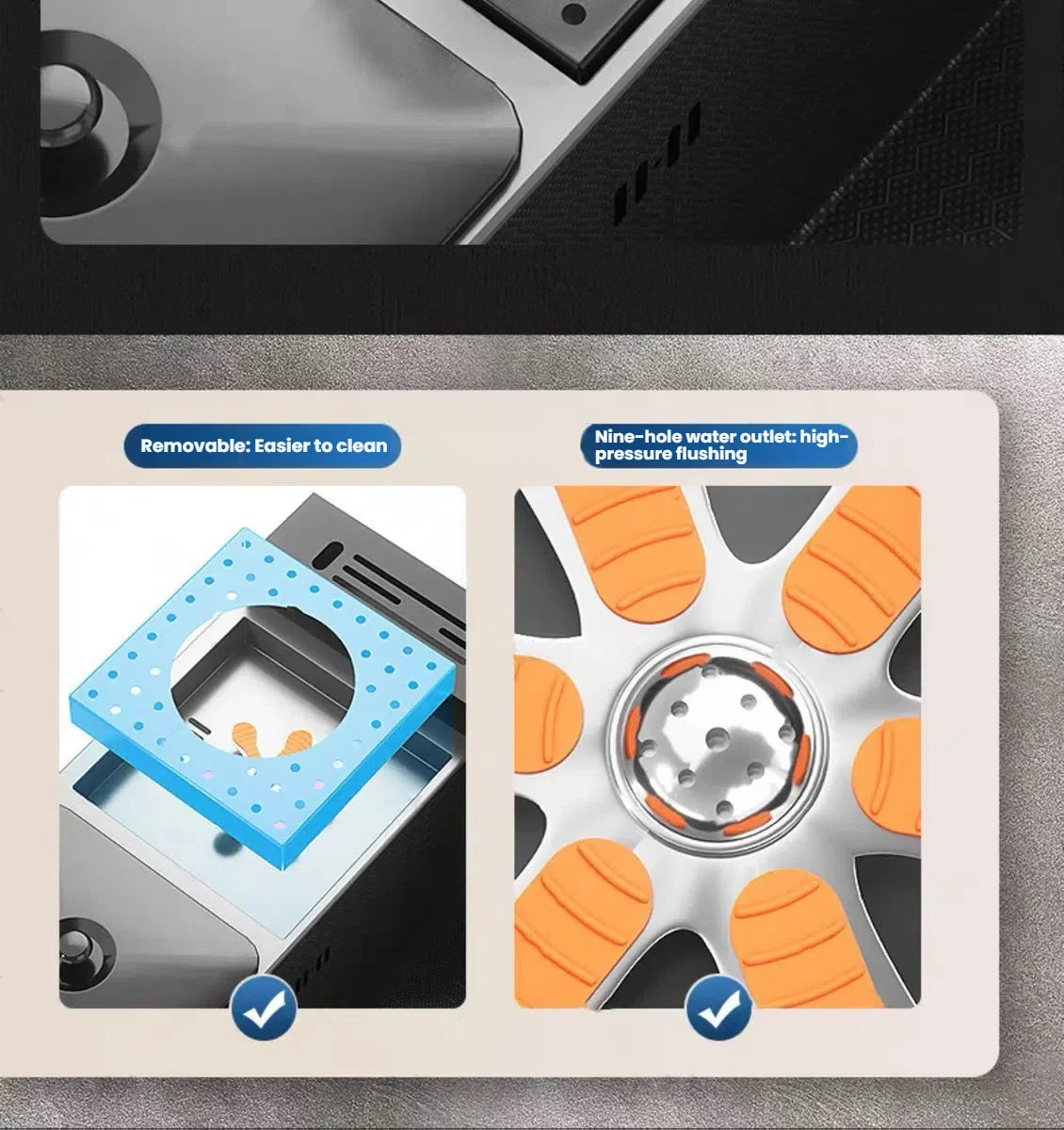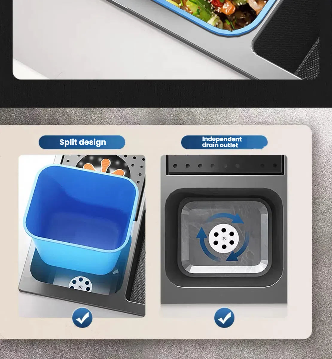 Large Single Slot Waterfall Stainless Steel Kitchen Sink With a Knife Holder and Trash Can Household Vegetable Washer Basin