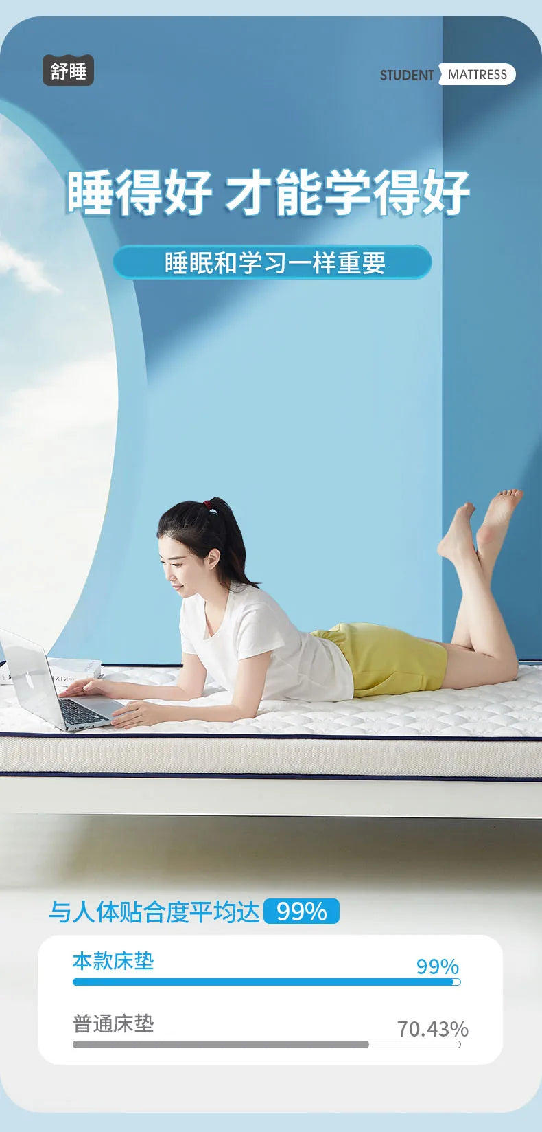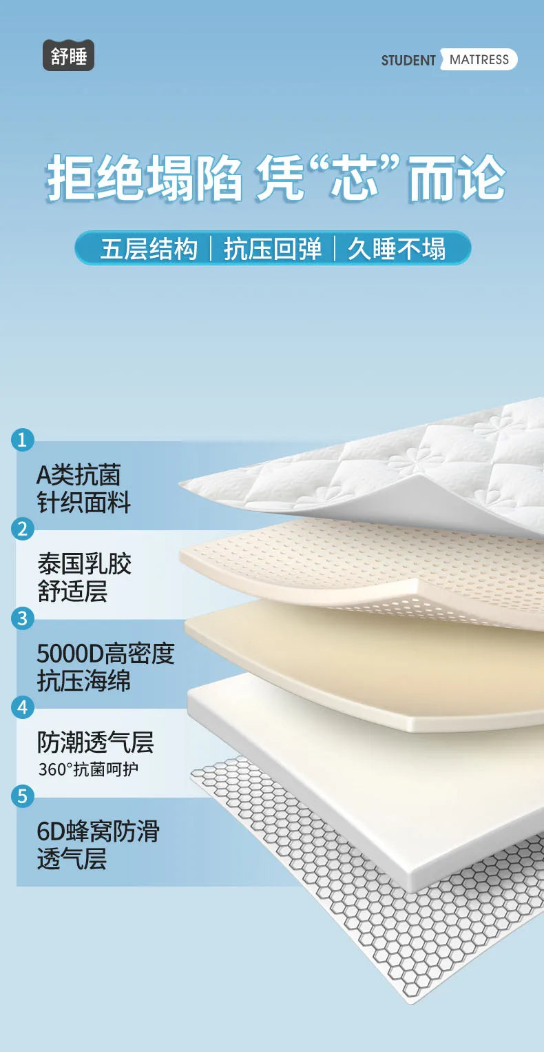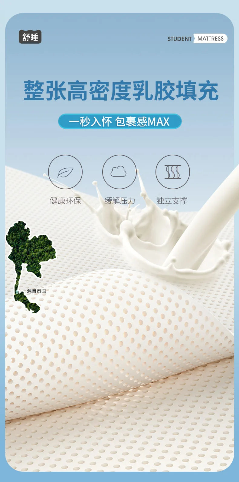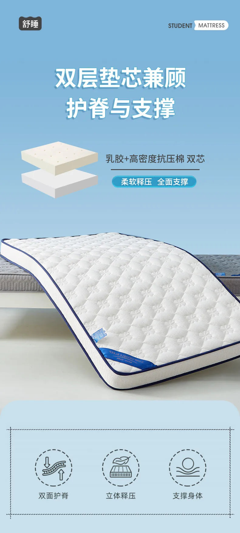 Latexmatratze für Studentenwohnheime, Einzelkissen, 90 x 190 cm, Universitäts-Etagenbettvermietung, spezielles 1,2 m langes Kissen
