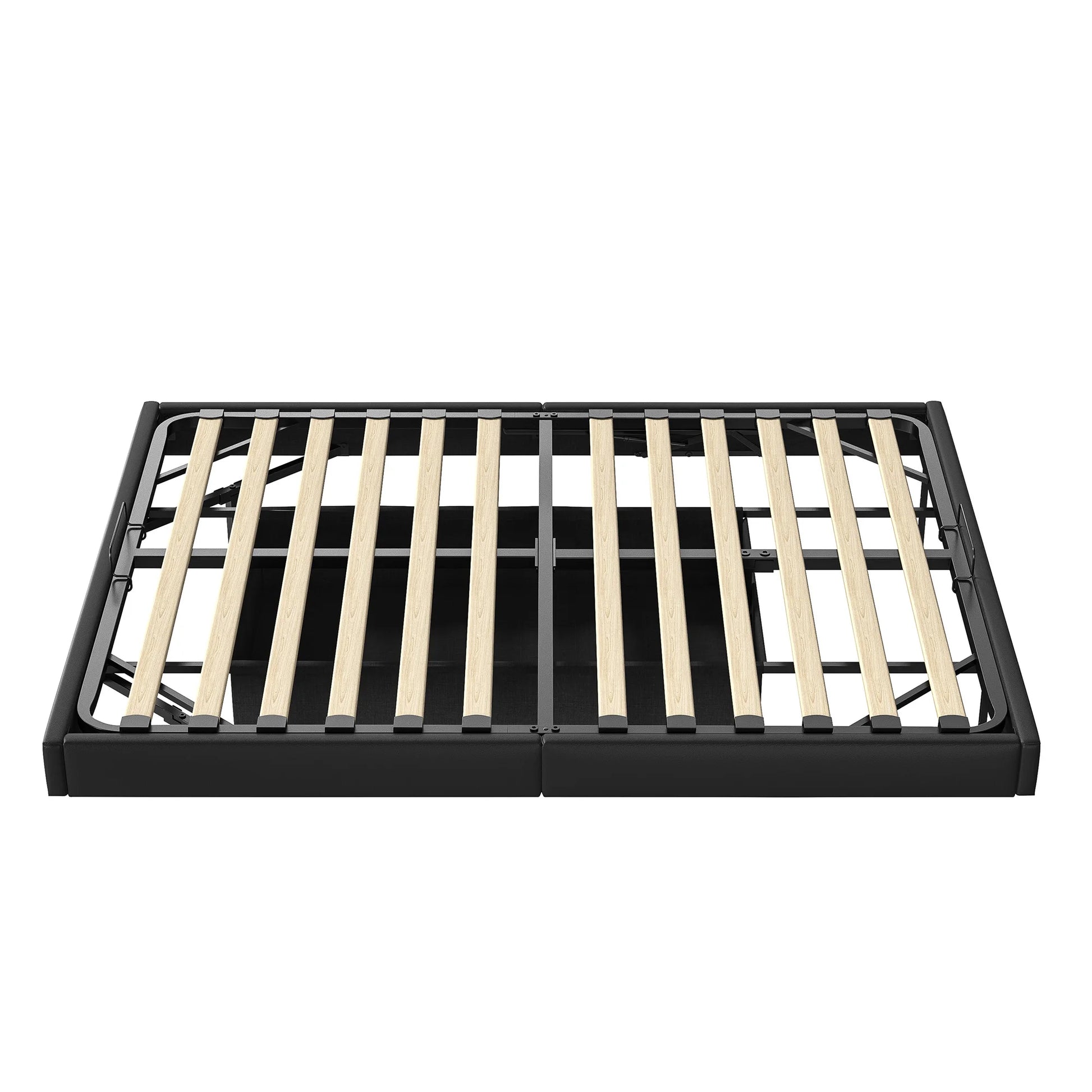 Lazyspace 160 x 200 cm großes Doppelbett mit Stauraum, schwebendes Bett ohne Kopfteil, Unterbett mit LED-Leuchten, schwarzes PU, ohne Matratze
