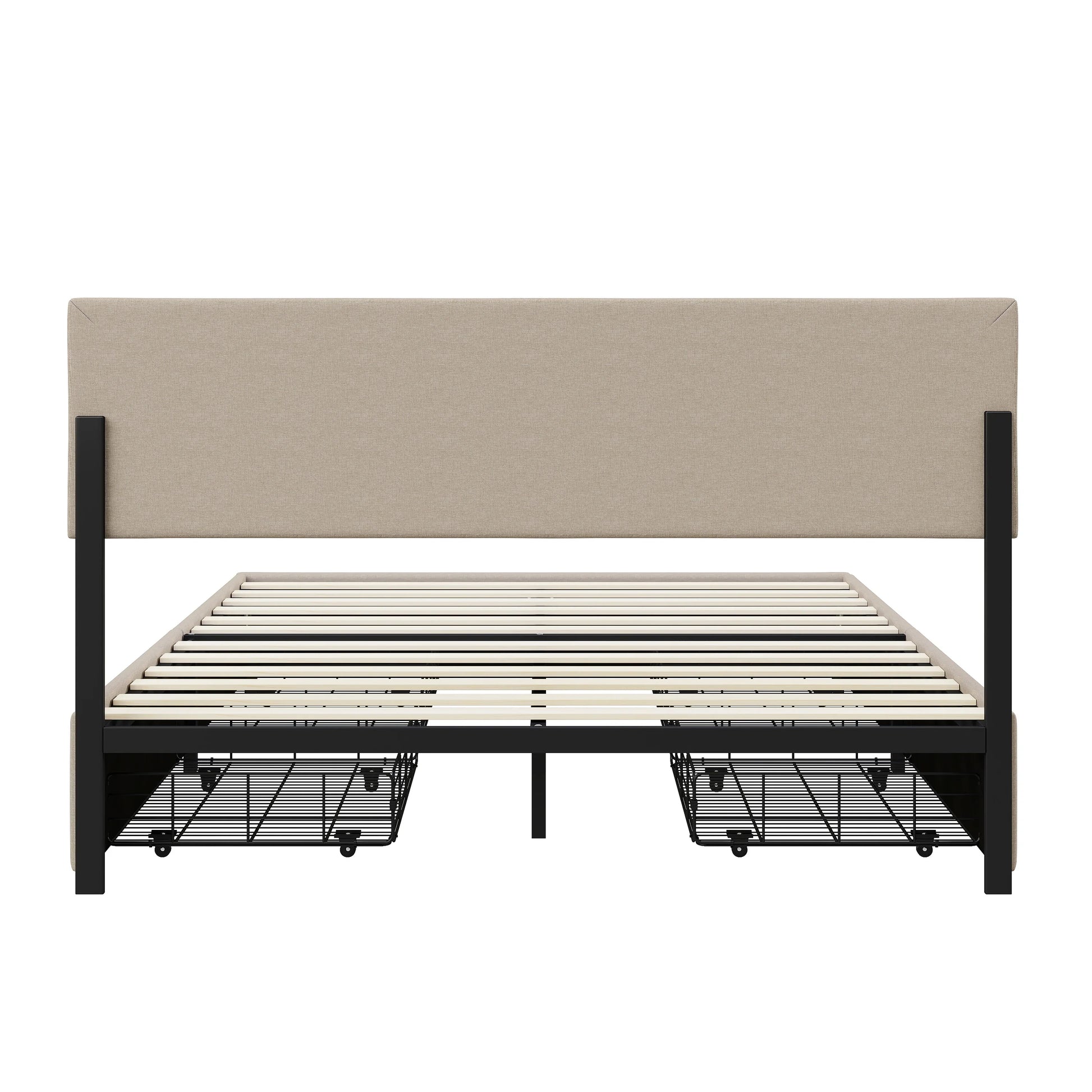 Lazyspace Beige-Leinen-Polsterbett, Doppelbettrahmen, Stauraumbett mit 4 Schubladen und höhenverstellbarem Kopfteil mit RGB-LED