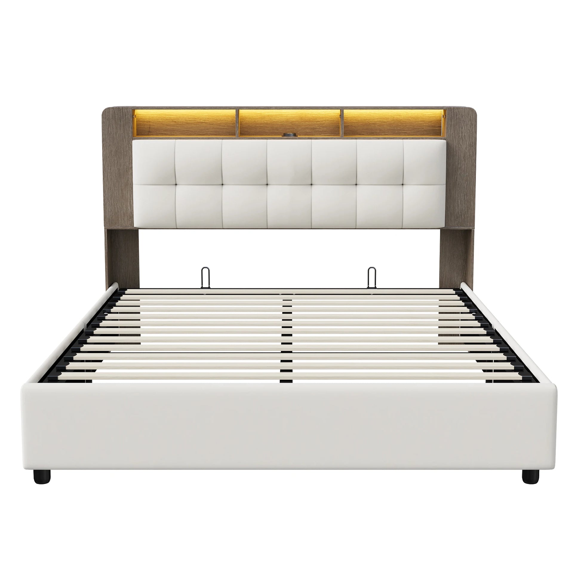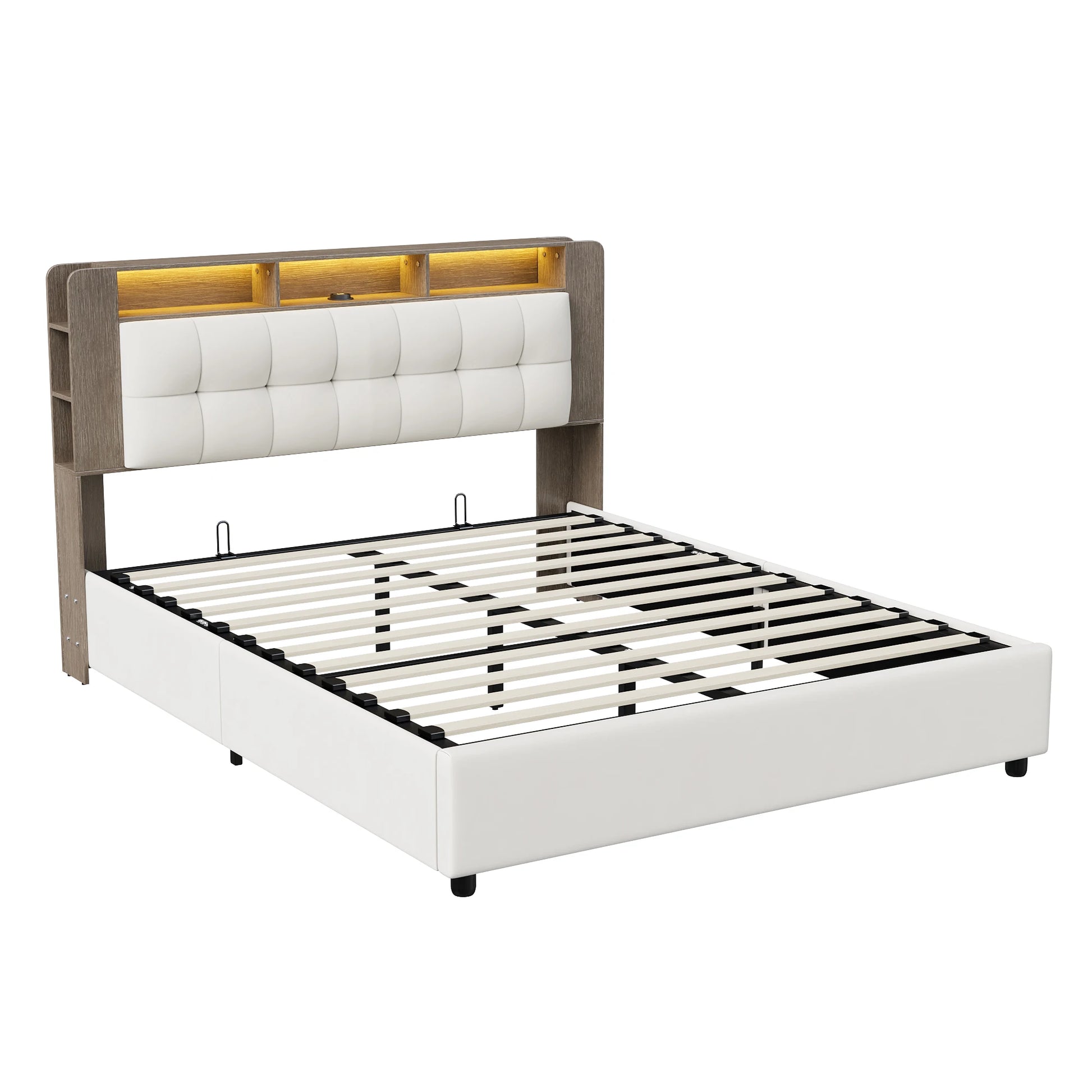 Lazyspace Samt-Rückenlehne, Holzlatten, hydraulisches Bett mit Bettkasten, Einzel- und Doppel-RGB-LED-Polsterbett, Bettrahmen