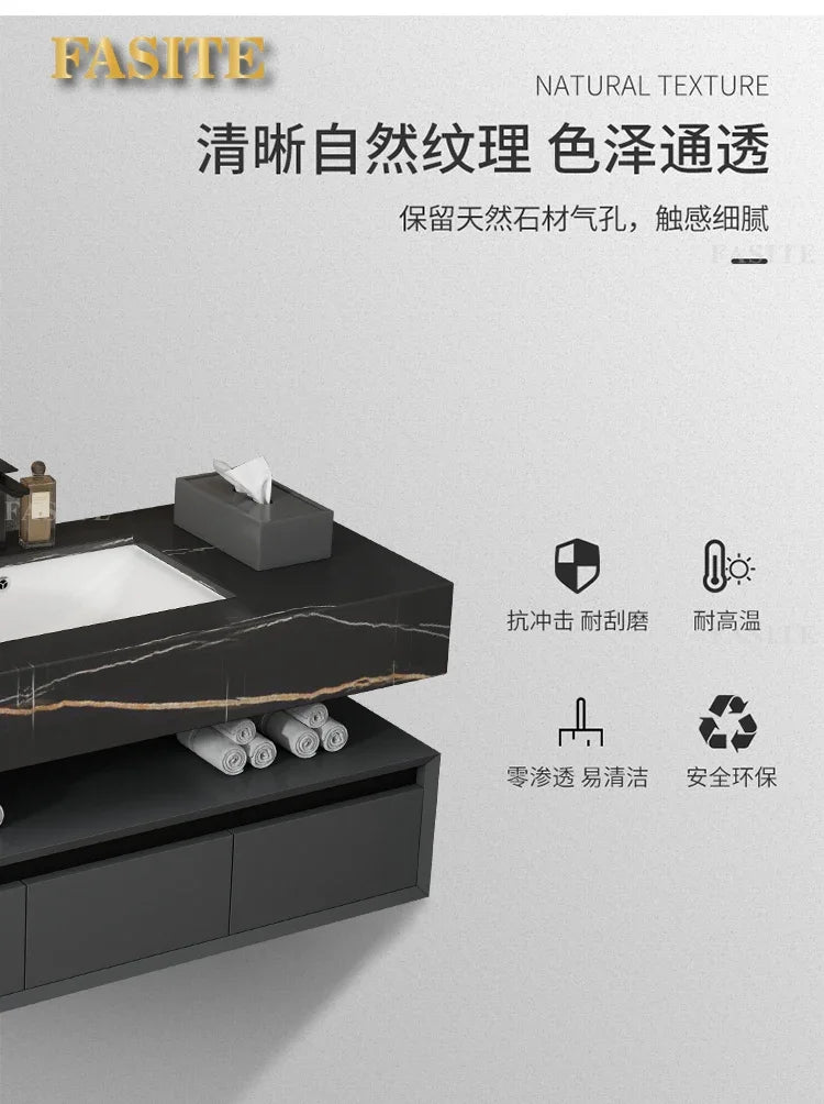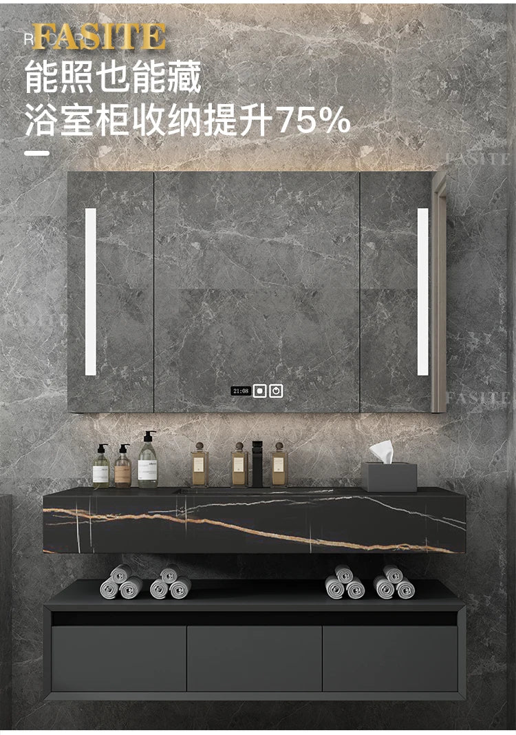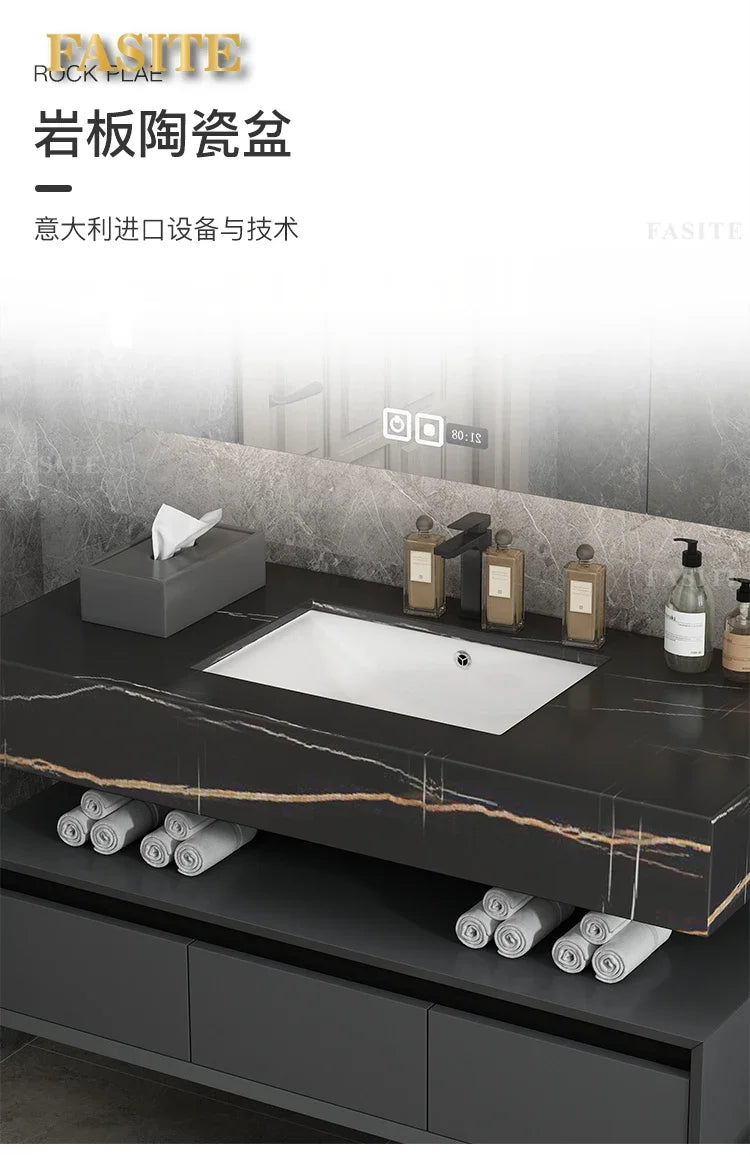 Leichter, luxuriöser Badezimmerschrank aus Steinplatten, integriertes Waschbecken, kombiniertes Waschbecken, WC-Waschbecken, nordischer einfacher Spiegelschrank
