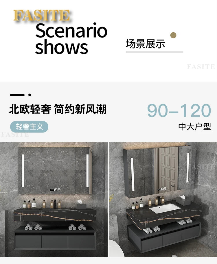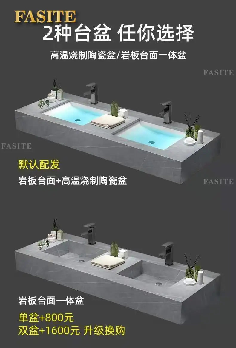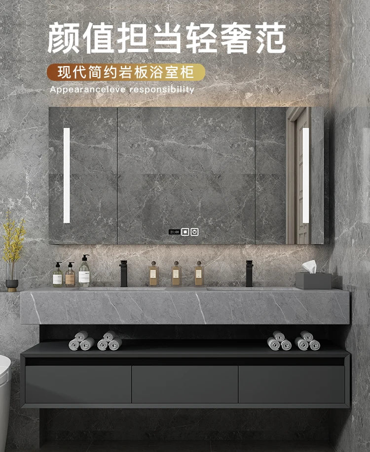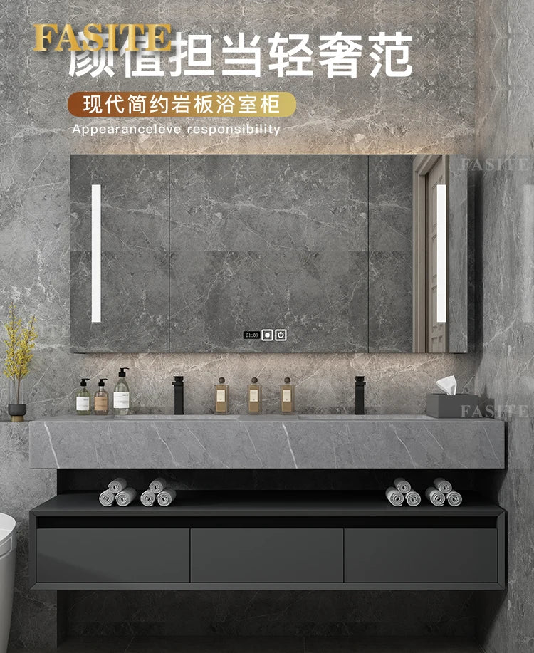 Leichter, luxuriöser Badezimmerschrank aus Steinplatten, integriertes Waschbecken, kombiniertes Waschbecken, WC-Waschbecken, nordischer einfacher Spiegelschrank