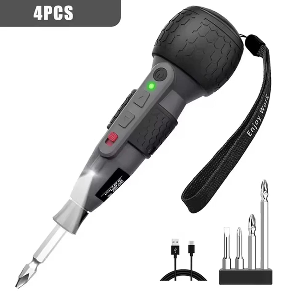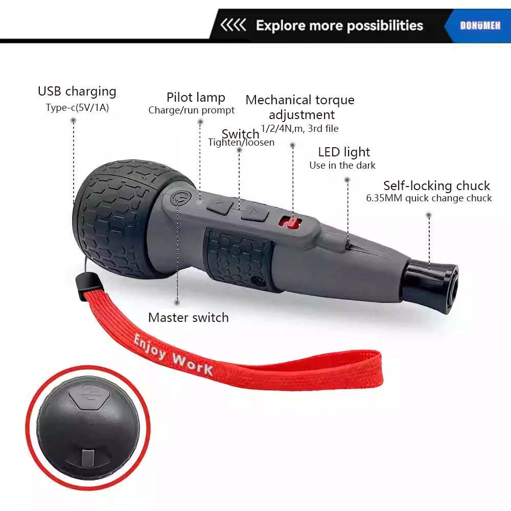 Leistungsstarker Mini-Elektroschrauber, Mini-Bohrmaschine, 3-stufiges Drehmoment, Typ C, LED-Licht, Stiftstil, Heimwartung, einfach für Anfänger