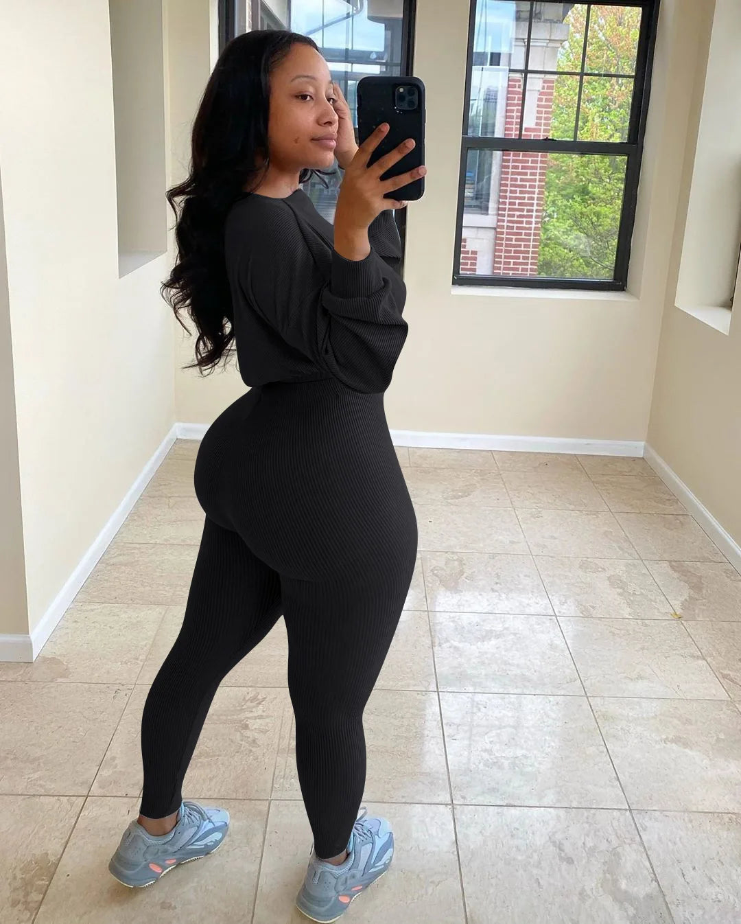 Letter Printed Embroidery Women Two Piece Ribbed Tracksuits Fall Spring Long Sleeve Sweatshirt and Skinny Pants Set