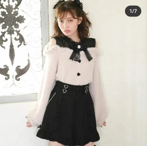 Liz-Pullover, japanische Massenproduktion, Herbst- und Winterwolle, schulterfrei, Spitze, schmaler kurzer Pullover, weicher, pelziger Strickpullover