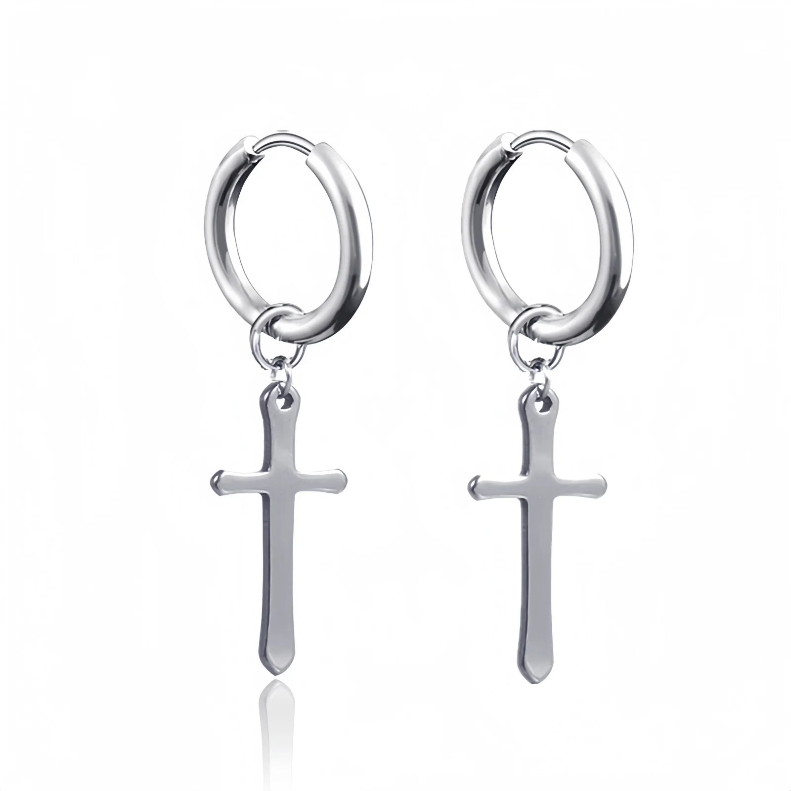 Long Hanging Crosses Leaves Pendants Hoops Woman Earrings Man Vintage Stainless steel Hip Hop Ear Piercing Jewelry Accessories