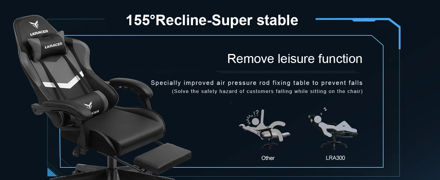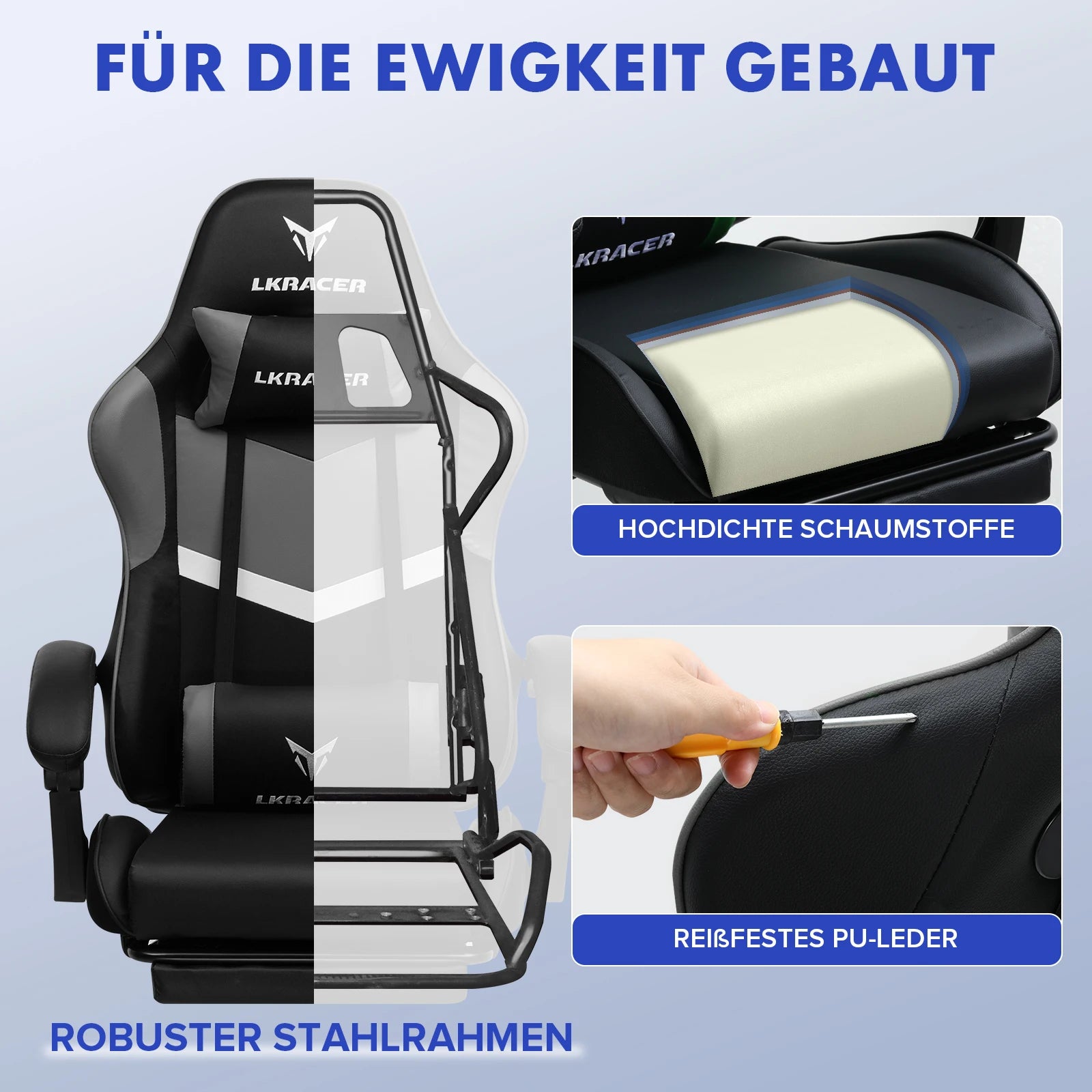 LUCKRACER Gaming Stuhl mit fußstütze Bürostuhl Ergonomisch mit verstellbare Lendenkissen, Kopfkissen Gaming Chair