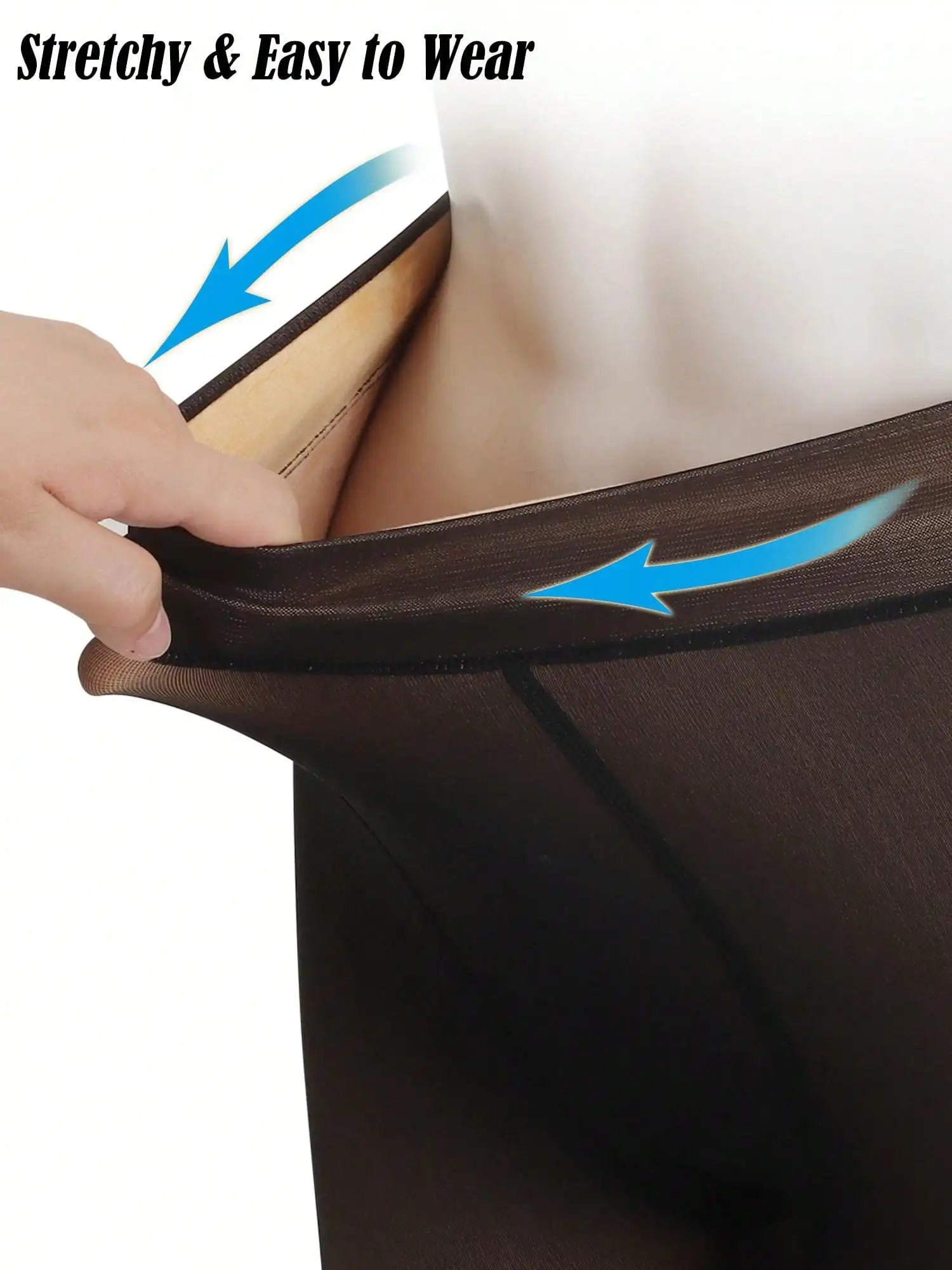 Luxtrada Womens Plus Size Thick Winter Tummy Control Fleece Lined Sheer Tights Fake Translucent Warm Leggings Thermal Opaque