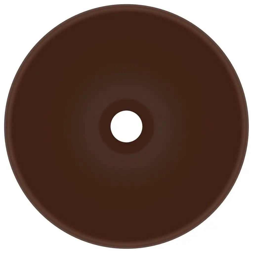 Luxuriöses rundes Waschbecken, dunkelbraun, matt, 32,5 x 14 cm, Keramikwaschbecken, Badezimmer und Küchen, Dekoartikel, Badezimmerzubehör