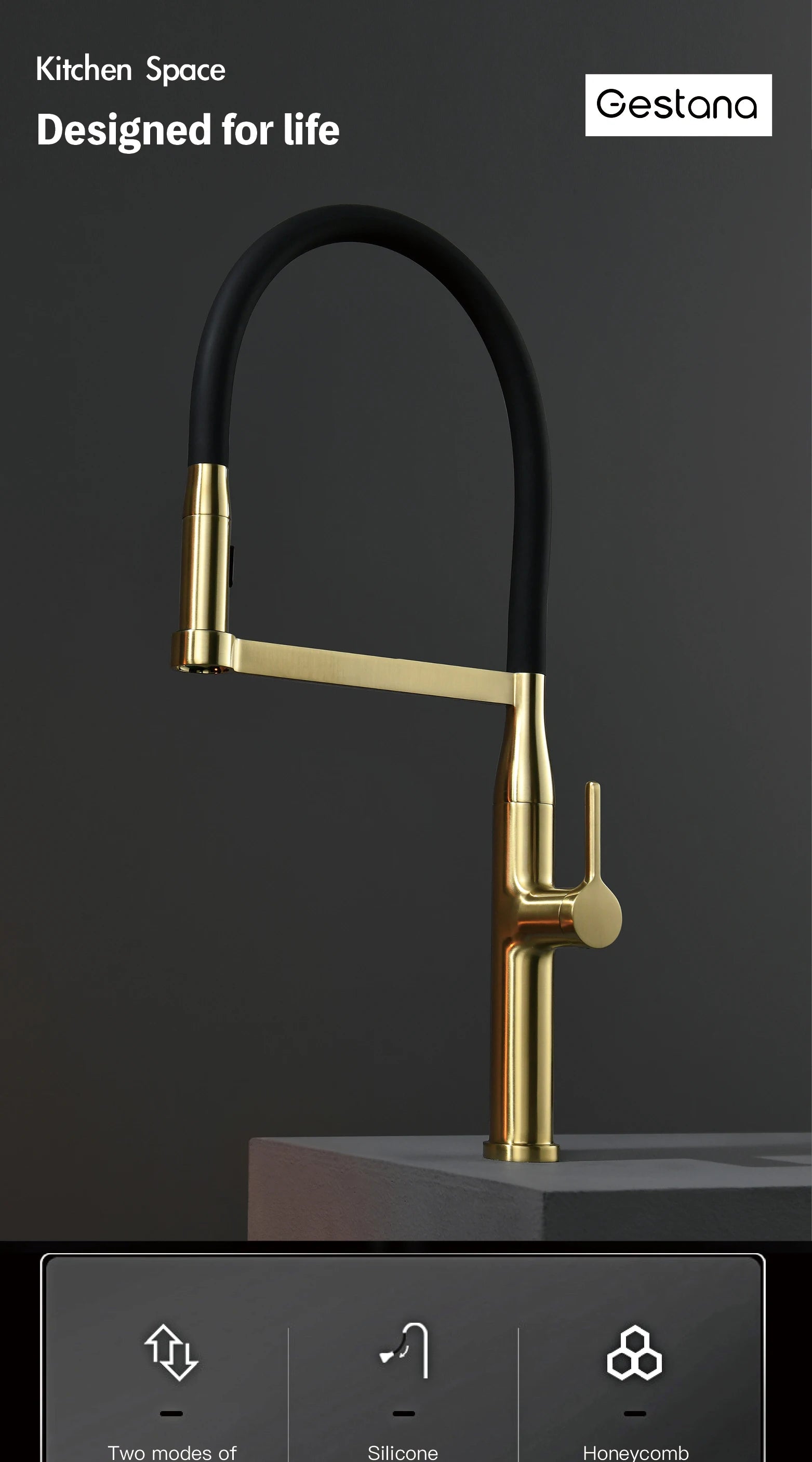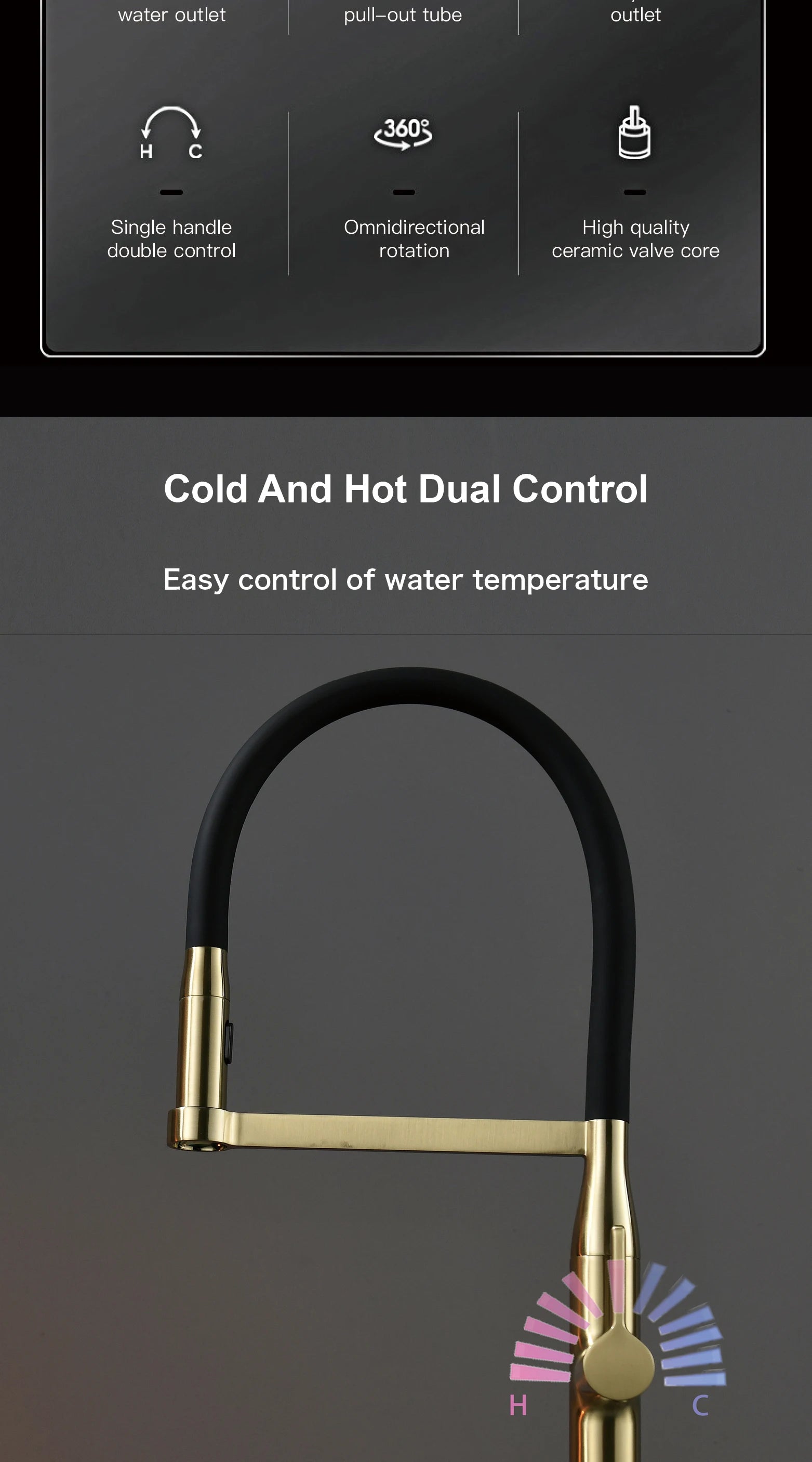 Luxury Brushed Gold Brass Pull Out Kitchen Faucet with Ceramic Cartridge Hot Cold Water Sink Tap Modern High End Sprayer Durable