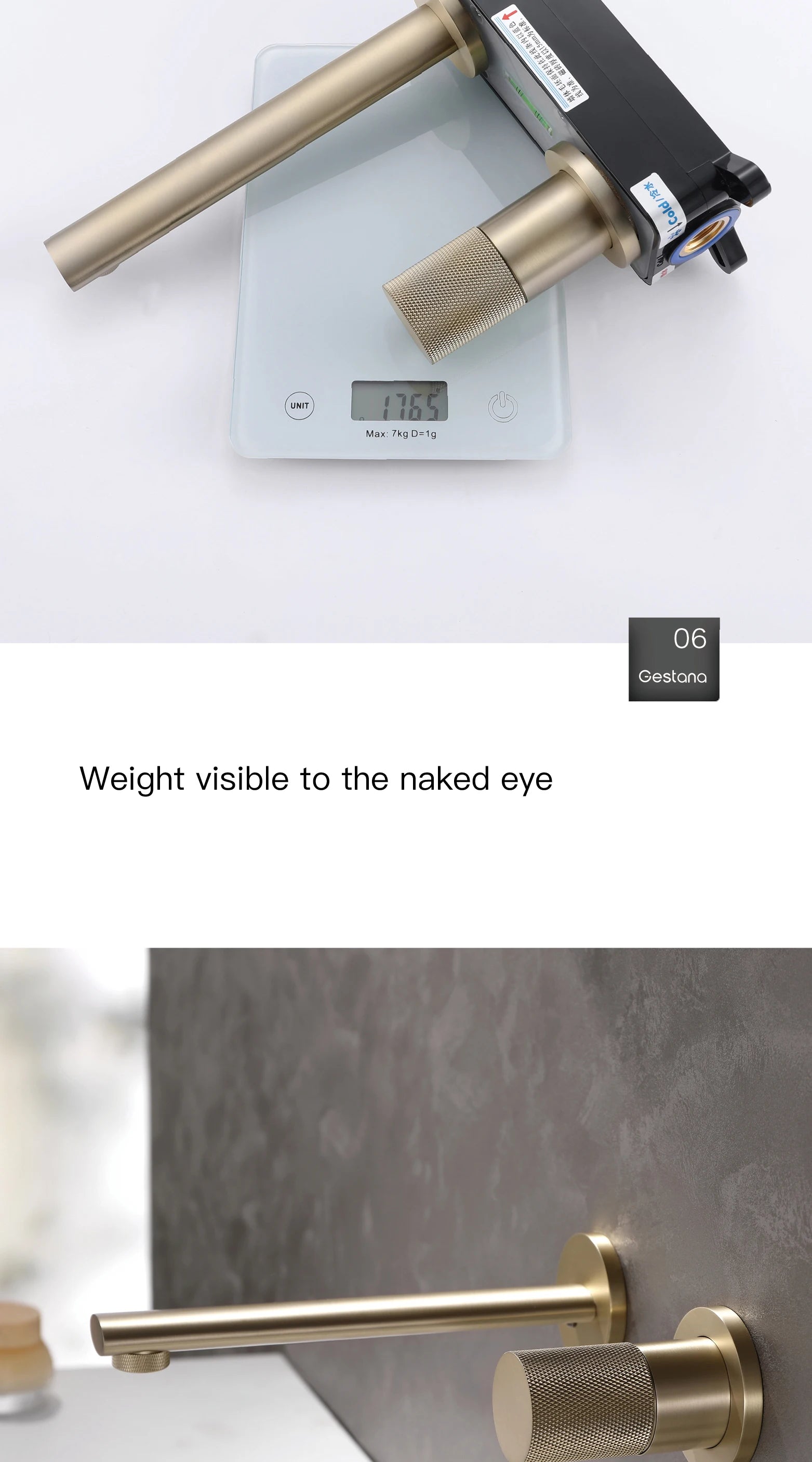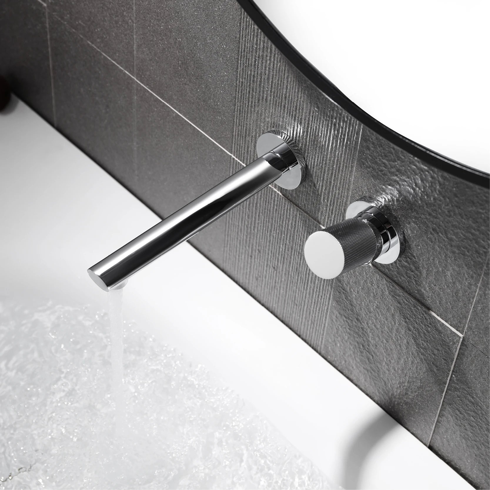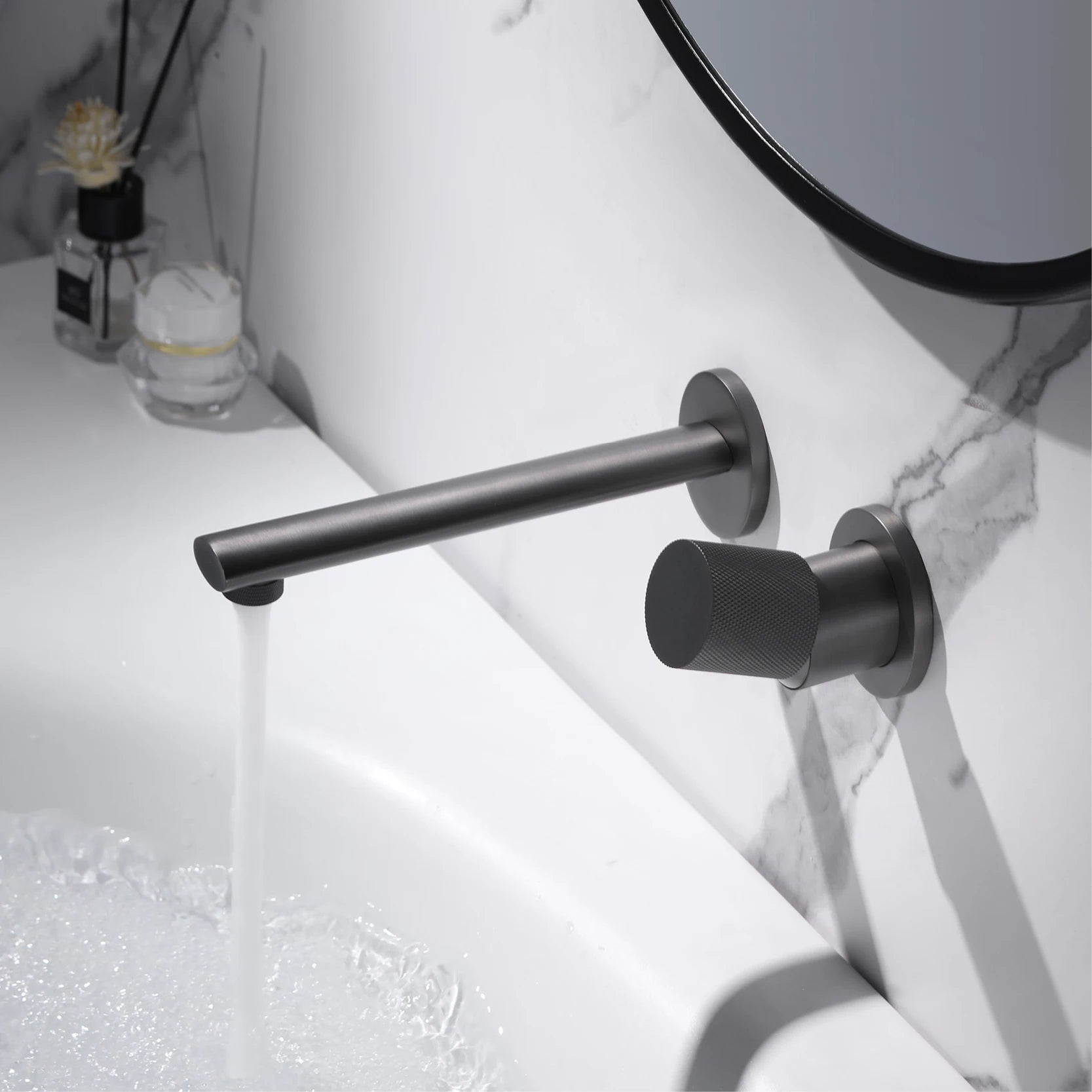 Luxury brushed gold brass wall mounted adjustable water volume bathroom faucet Embedded design for hot and cold water basin Tap