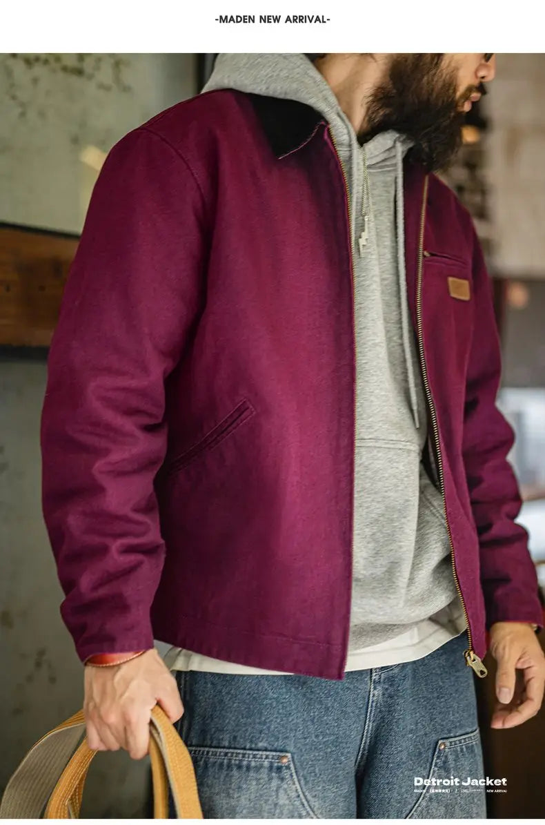 Maden Men's Retro J001 Detroit Jacket Heavyweight Canvas Hunting Coat Lapel Collar Work Jackets with Zipper for Spring Fall