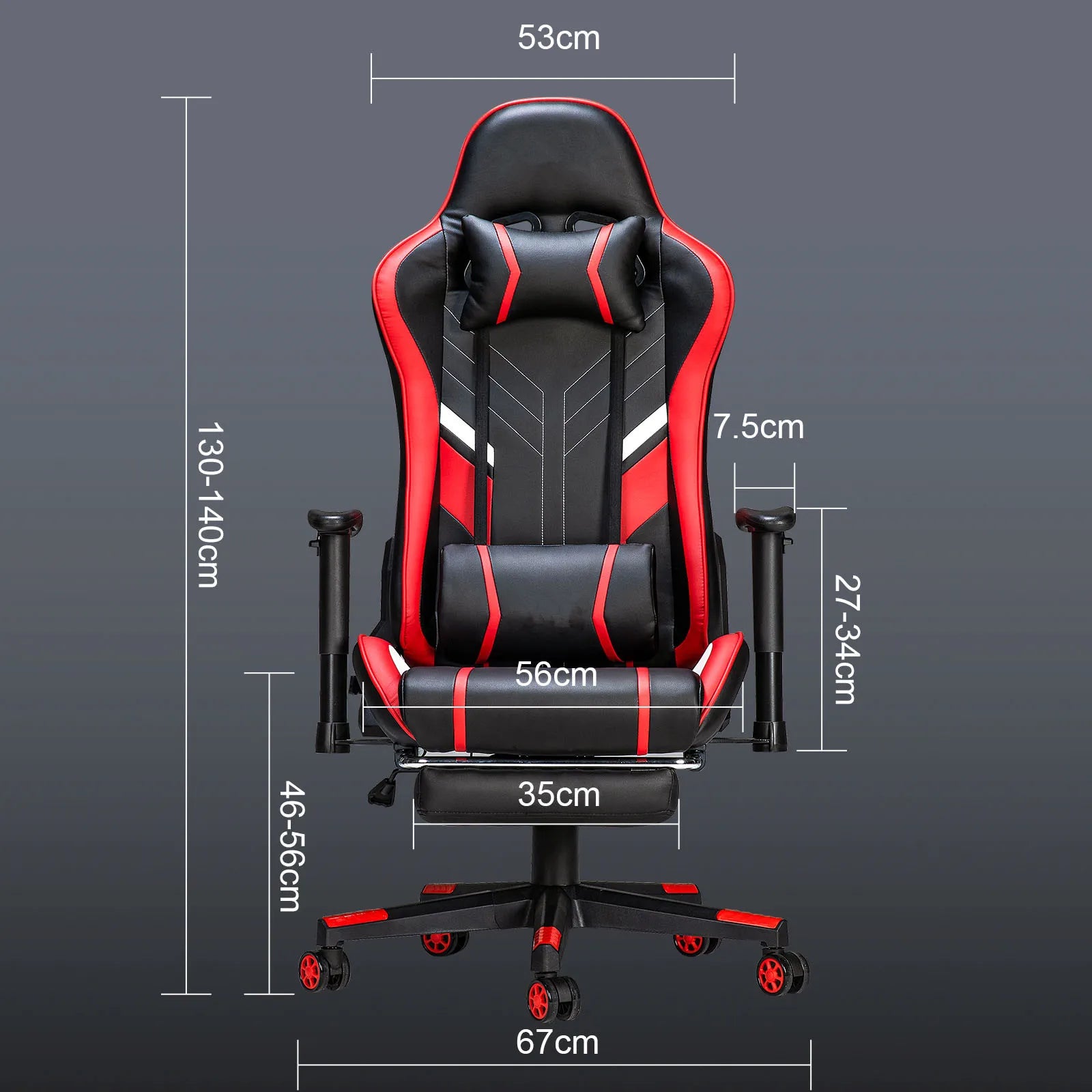 Massage-Gaming-Stuhl, 7-Punkt-Sitzhöhe, ergonomischer Bürostuhl mit Fußstütze und Lordosenstütze, GC-RC03 Stühle