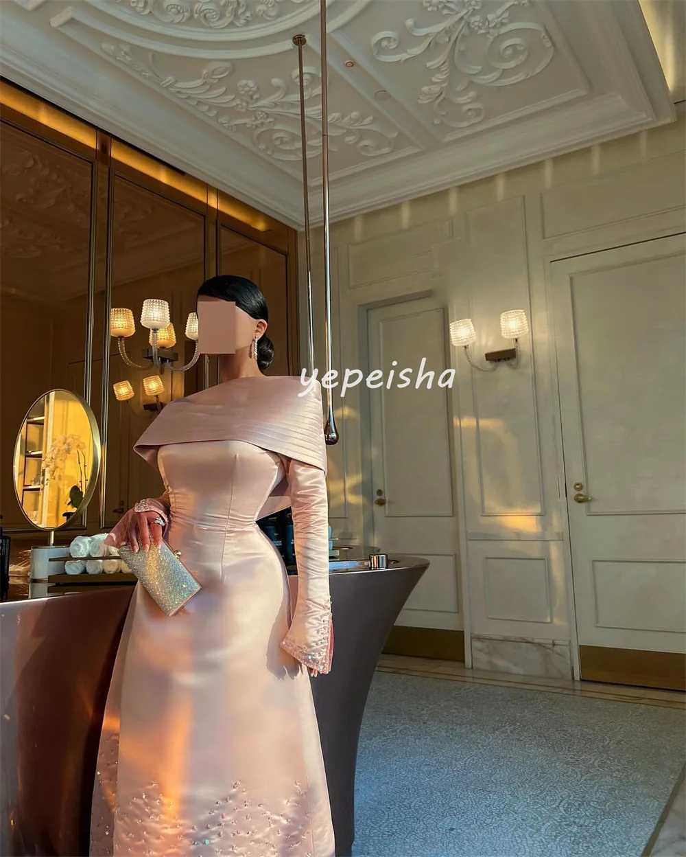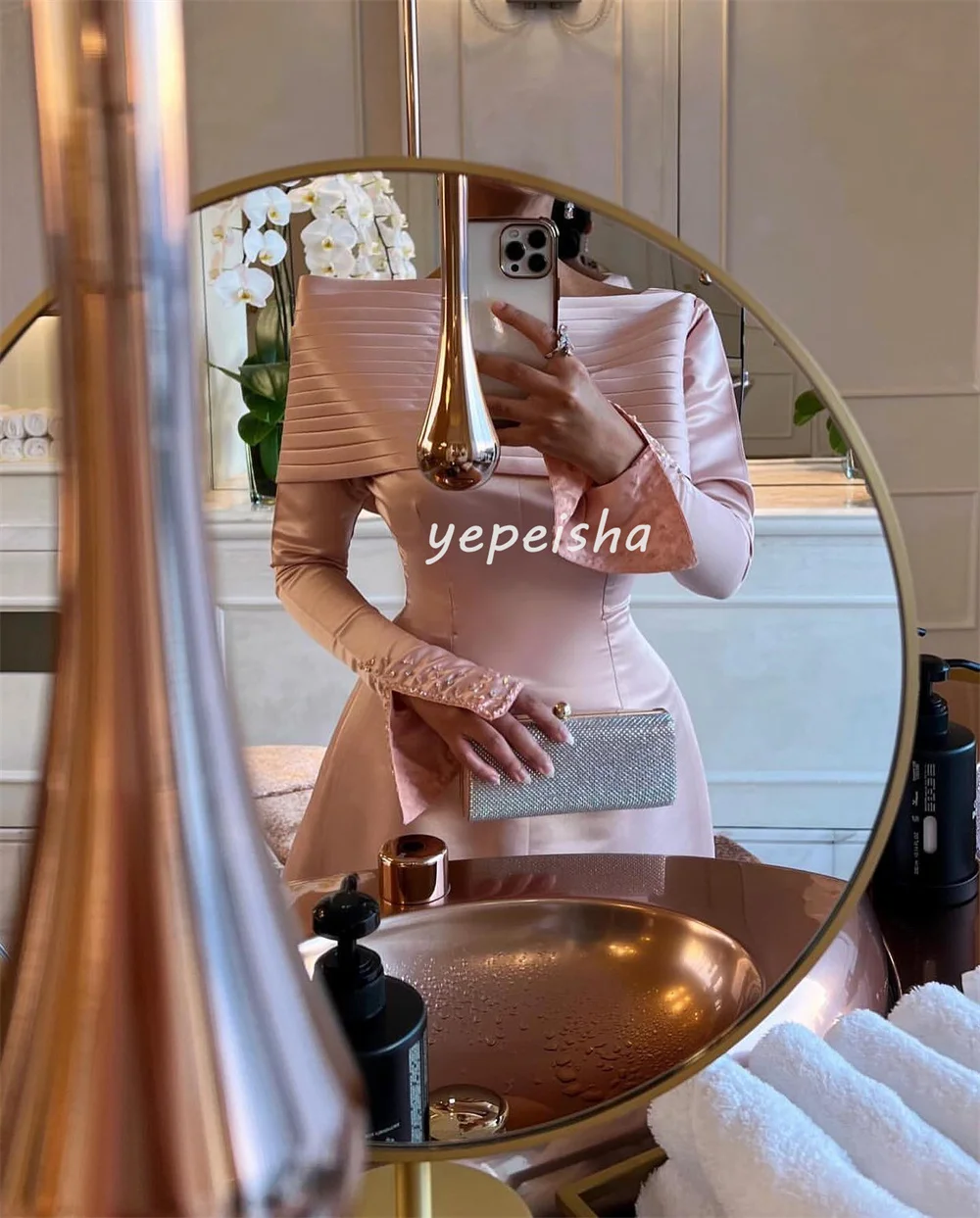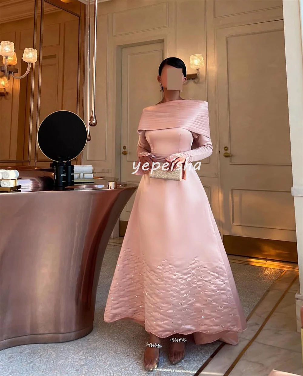 Maßgeschneiderte, exquisite, modische, plissierte, drapierte, mit Pailletten besetzte, schulterfreie A-Linien-Midikleider, maßgeschneiderte Anlasskleider, formell