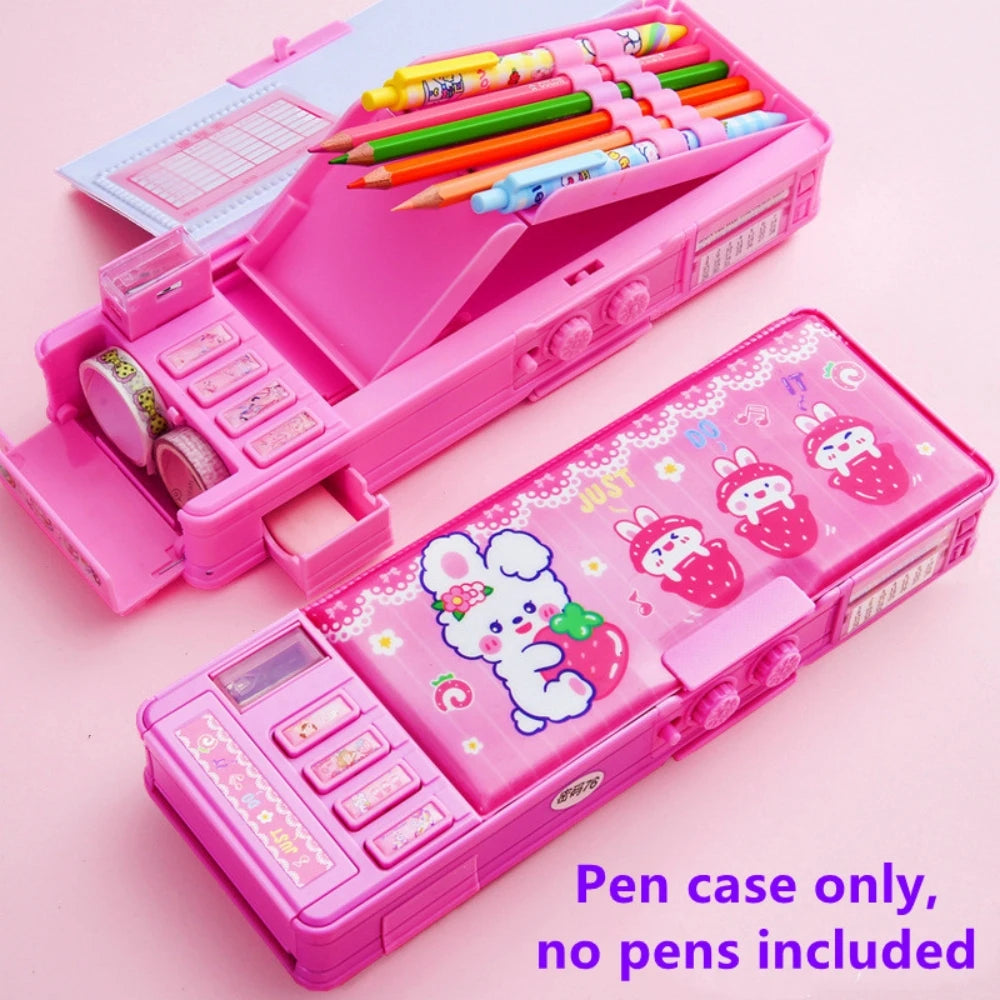 Mechanisches, verformbares, niedliches Federmäppchen mit Stifteinsatz, multifunktionaler Schlüsselschalter, Cartoon-Aufbewahrungsbox für Schule und Schreibwaren aus Kunststoff
