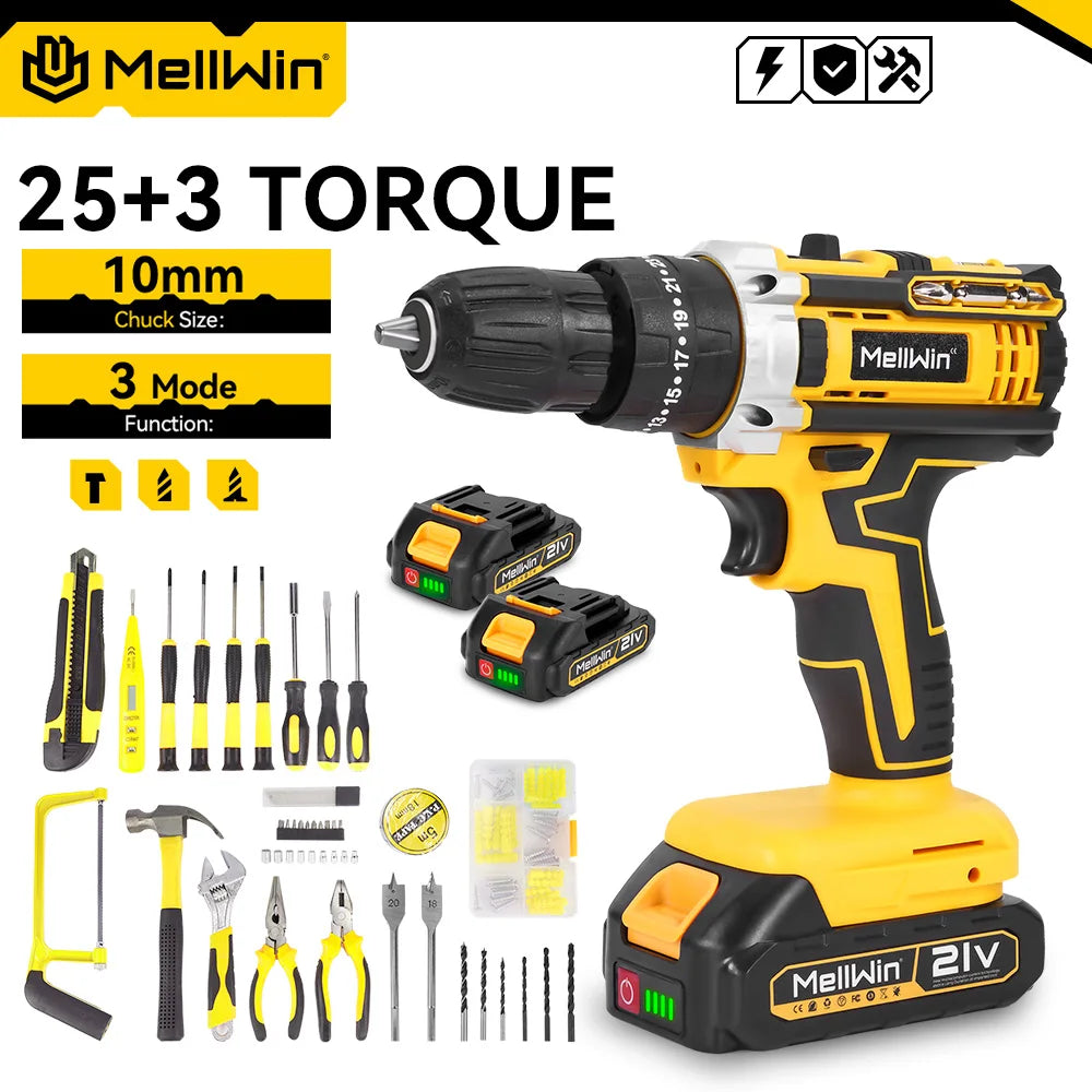 MELLWIN 25 + 3 Drehmoment Elektrische Schlagbohrmaschine Werkzeug Set 3 Modus 2 Gang Geschwindigkeit Akkuschrauber Elektrowerkzeug Für 21 V Batterie