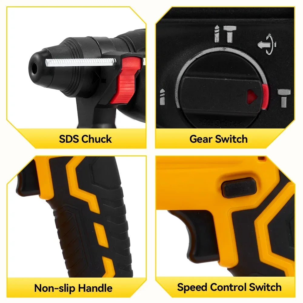 MELLWIN 26 mm bürstenloser elektrischer Bohrhammer, multifunktionaler Bohrhammer, Schlagbohrmaschine, Werkzeugset für Makita 18 V Batterie-Pin