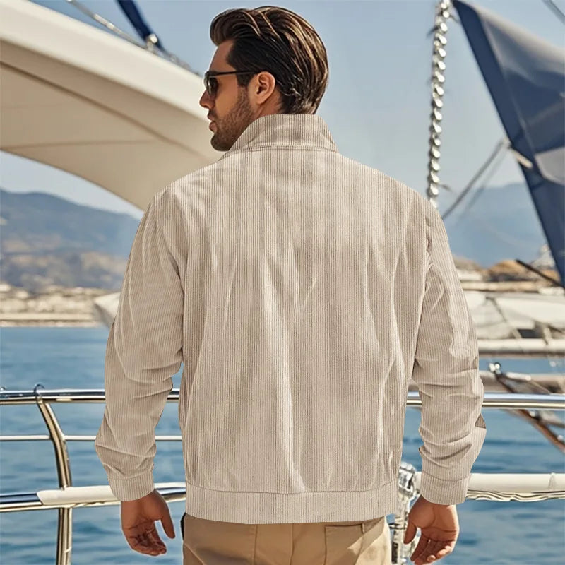 Men's Corduroy Jacket Stand-up Collar Slim Fit Retro Multi-pocket Workwear Commuter Coat for Spring And Autumn