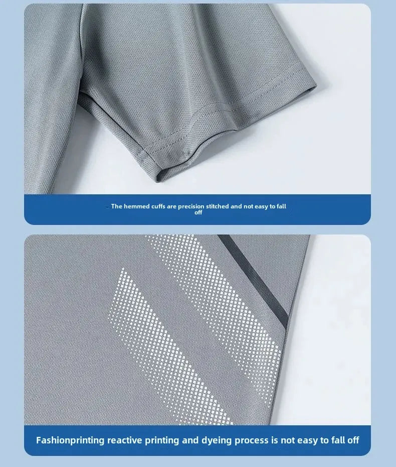 Men's Fitness Ice Silk Sports Suit Short Sleeve Training Room Basketball Morning Run Summer Outfit Shorts And T-shirt Set