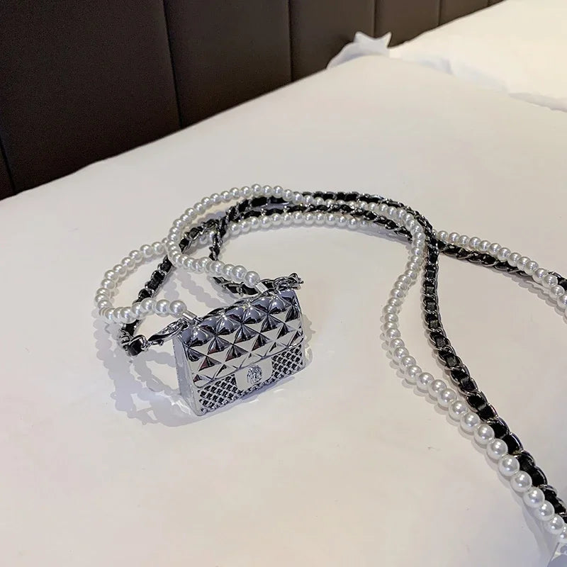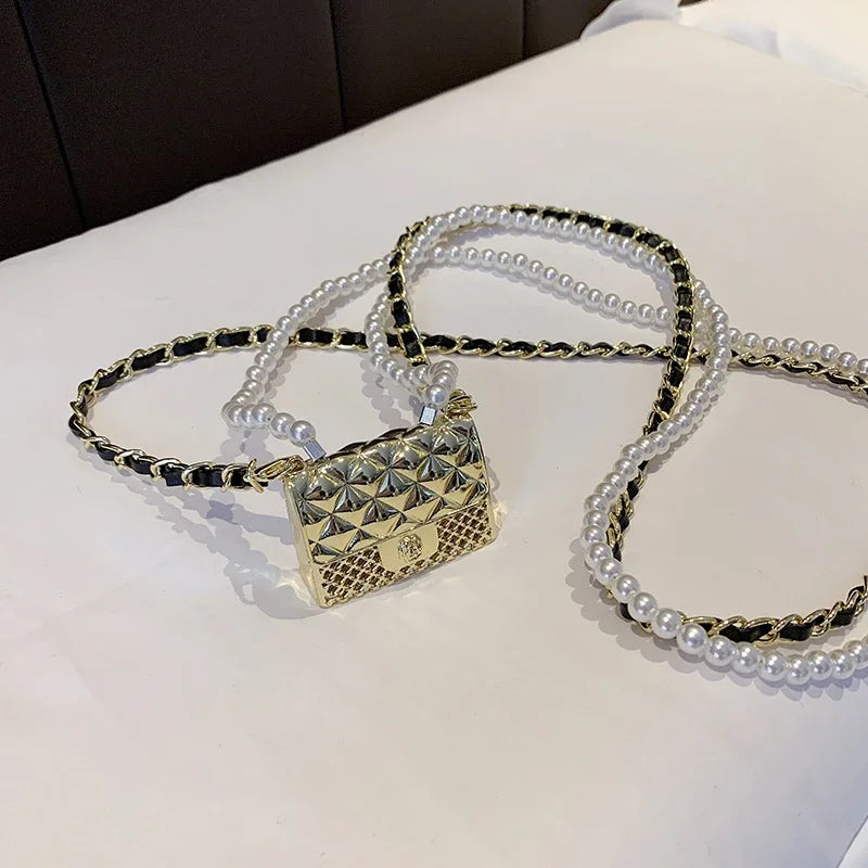 Mini Metal Shoulder Bags for Women Pearl Chain Crossbody Bag Designer Clothing Accessories Satchel Female Decorative Box Handbag
