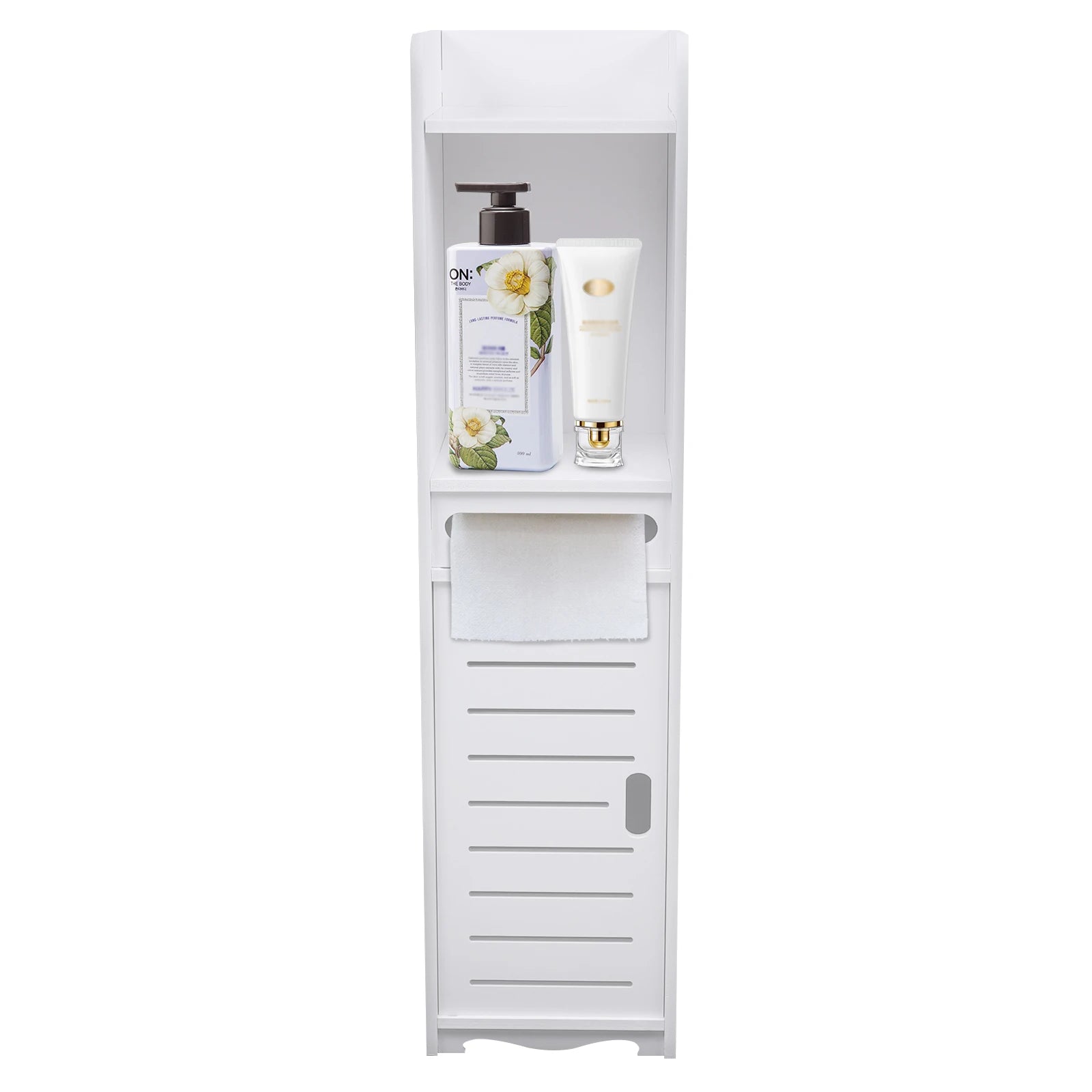 Moderner Badezimmers chrank Holz Kunststoff platte freistehende Toilette hohes schmales Regal weiß 20x20x80cm