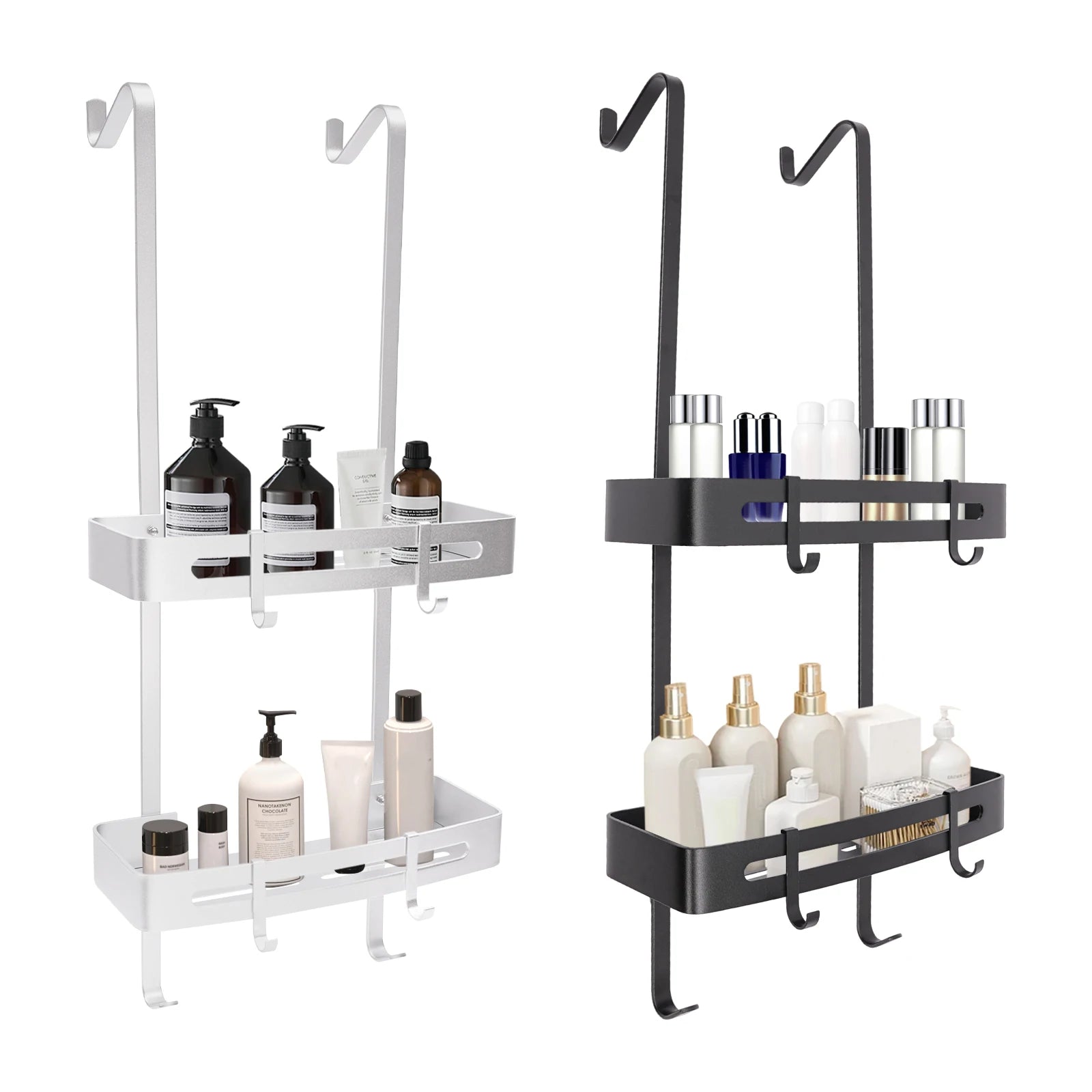 Modernes 2-stufiges Badezimmerregal in Silber/Schwarz, an der Tür montiertes Lagerregal, geeignet für Badezimmer, Küche, Wohnzimmer, Balkon