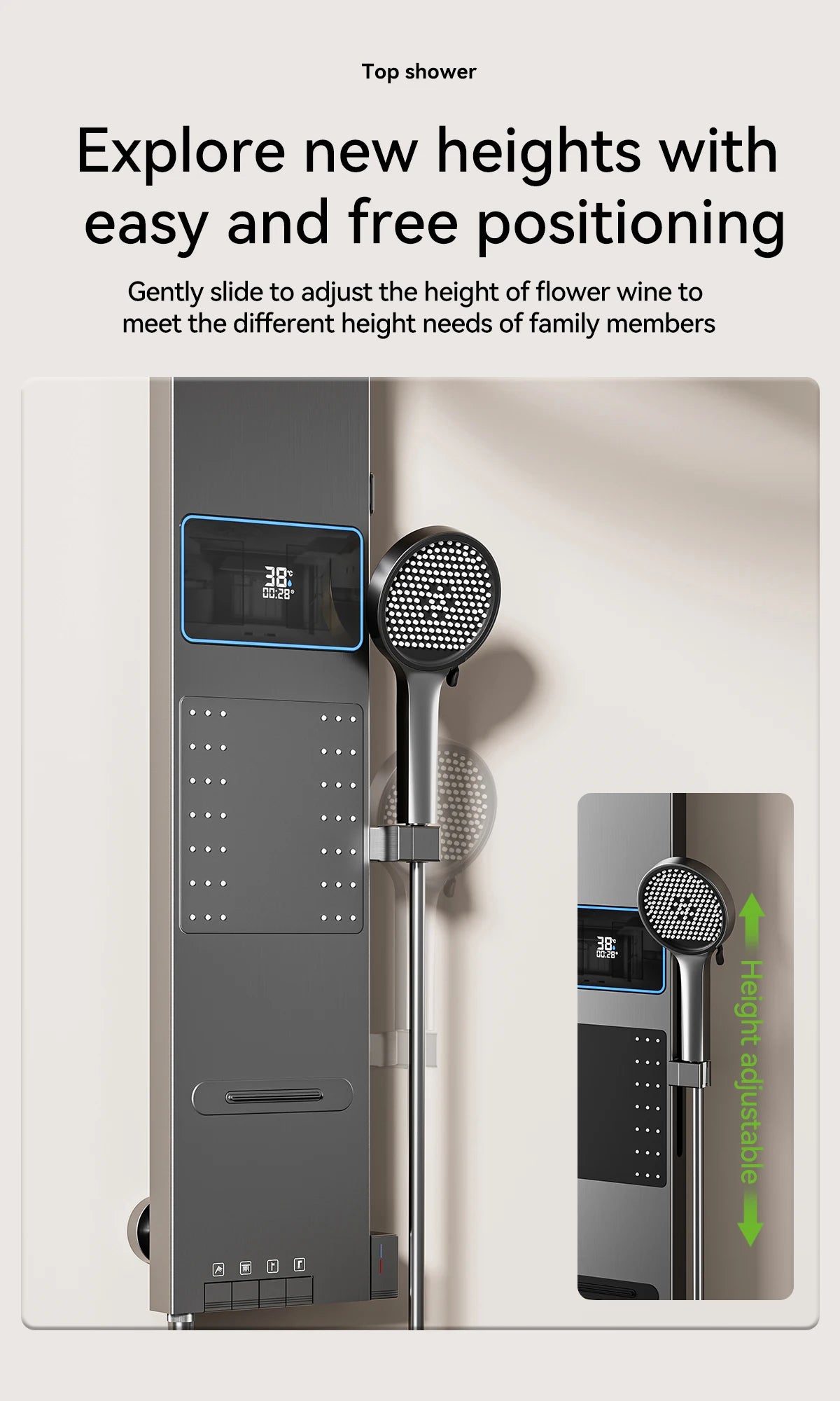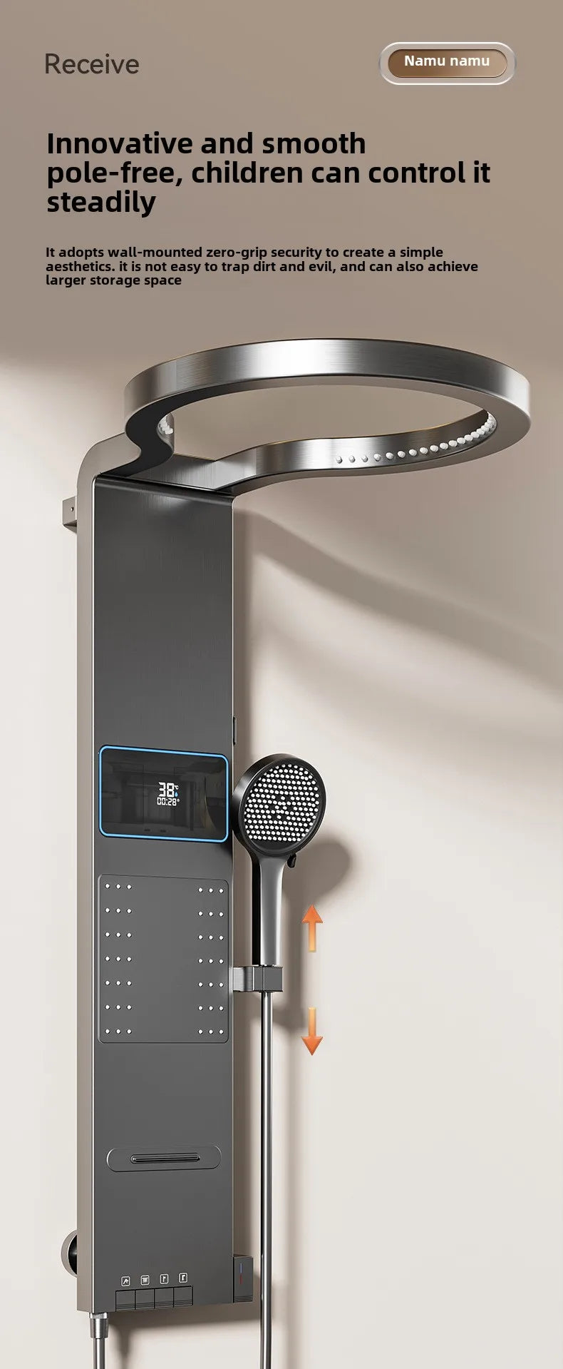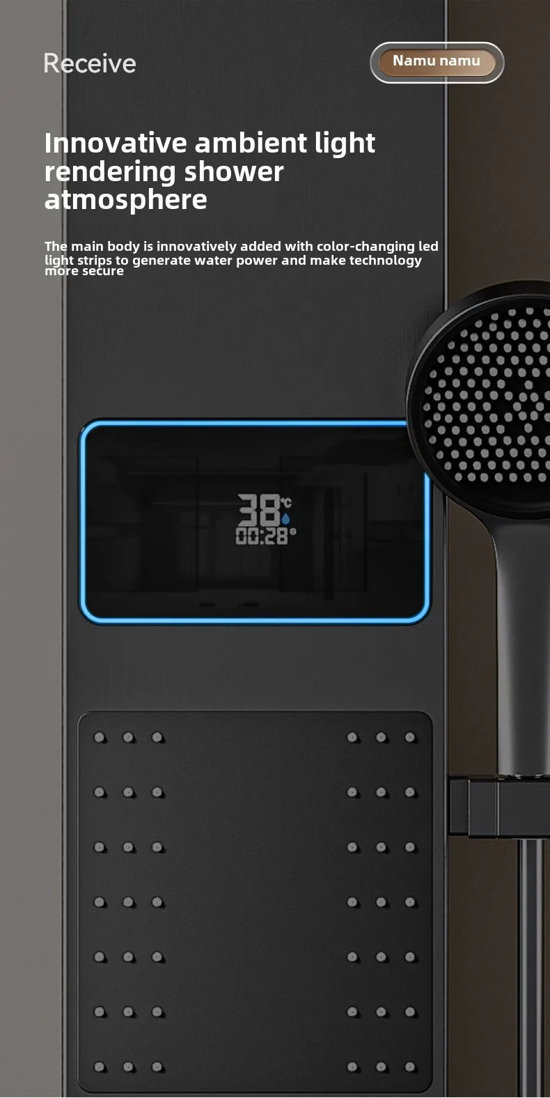 Multi Functional LED Shower Screen Wall Mounted Waterfall Shower Head Set Bathroom Digital Atmosphere Light Shower Set Screen