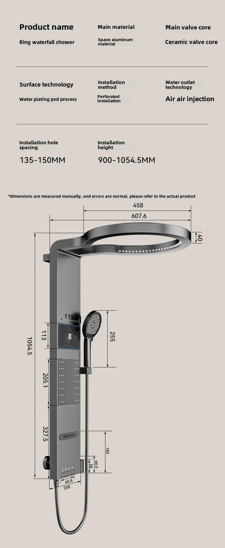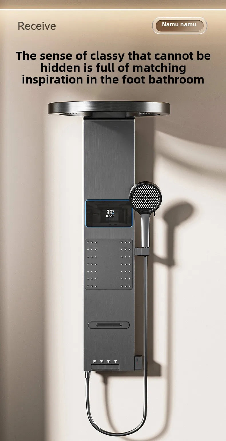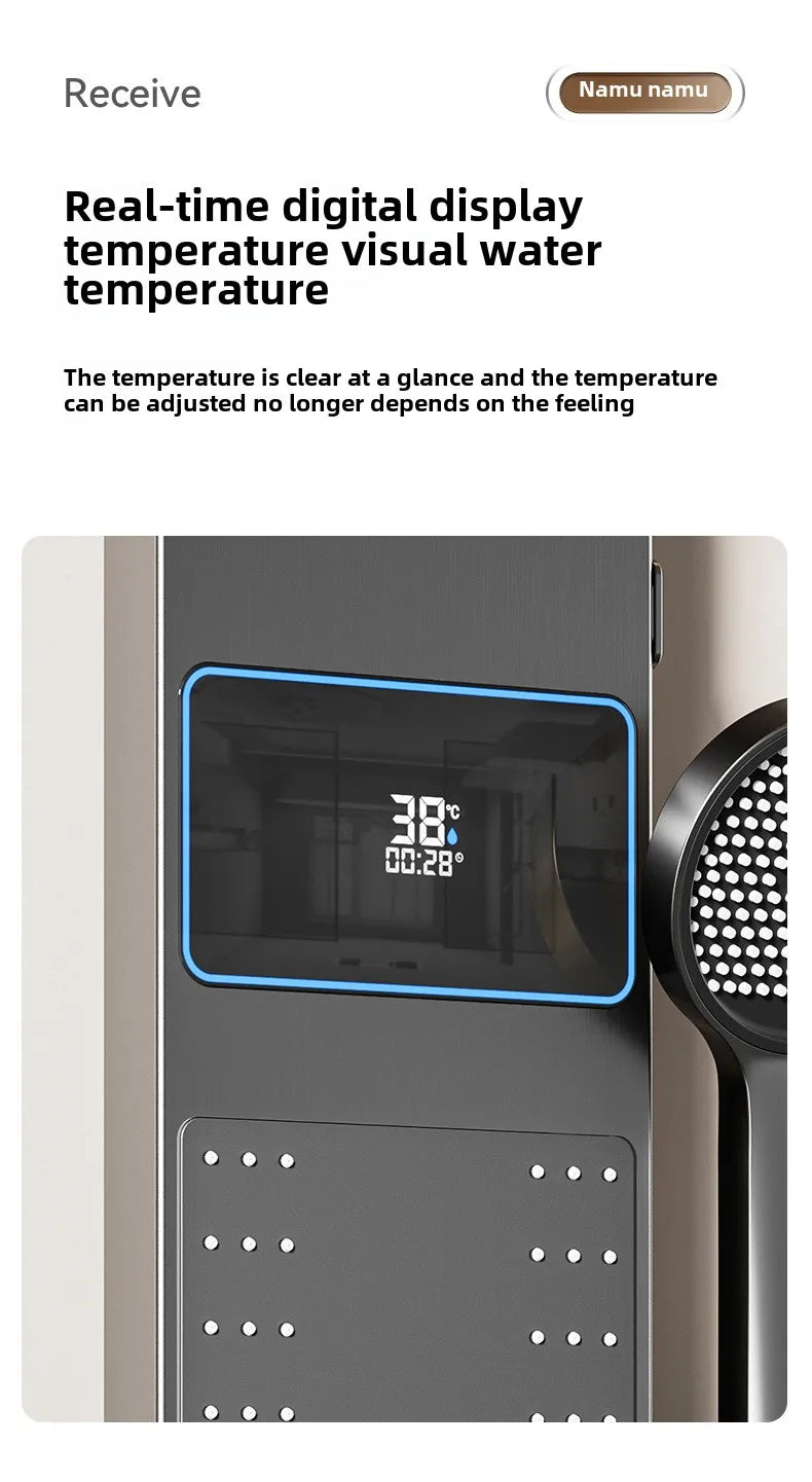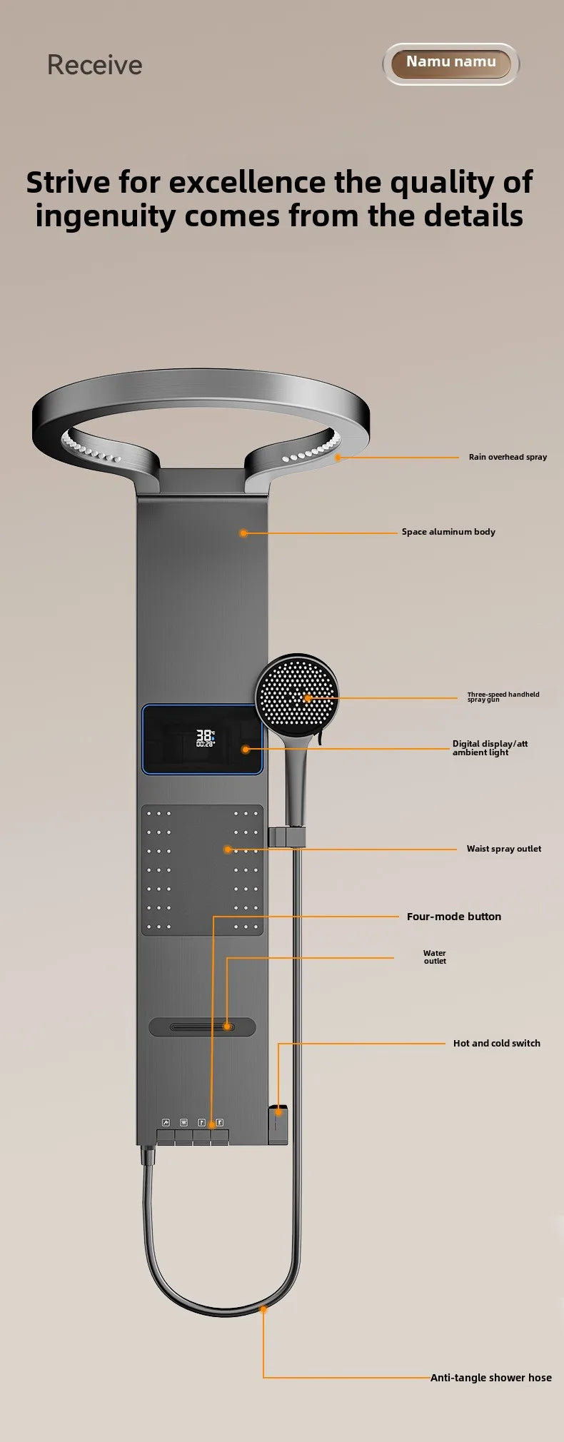 Multi Functional LED Shower Screen Wall Mounted Waterfall Shower Head Set Bathroom Digital Atmosphere Light Shower Set Screen
