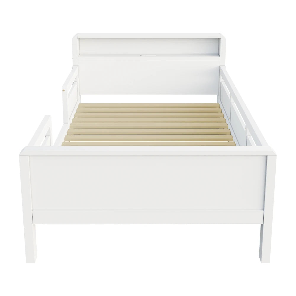 Multifunktions-Holzbett, USB- und Tape-C-Kombinationssteckdose, kleines LED-Licht, Kopfteil mit Einlagerfunktion, Einzelbett
