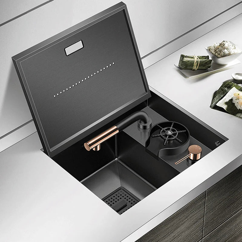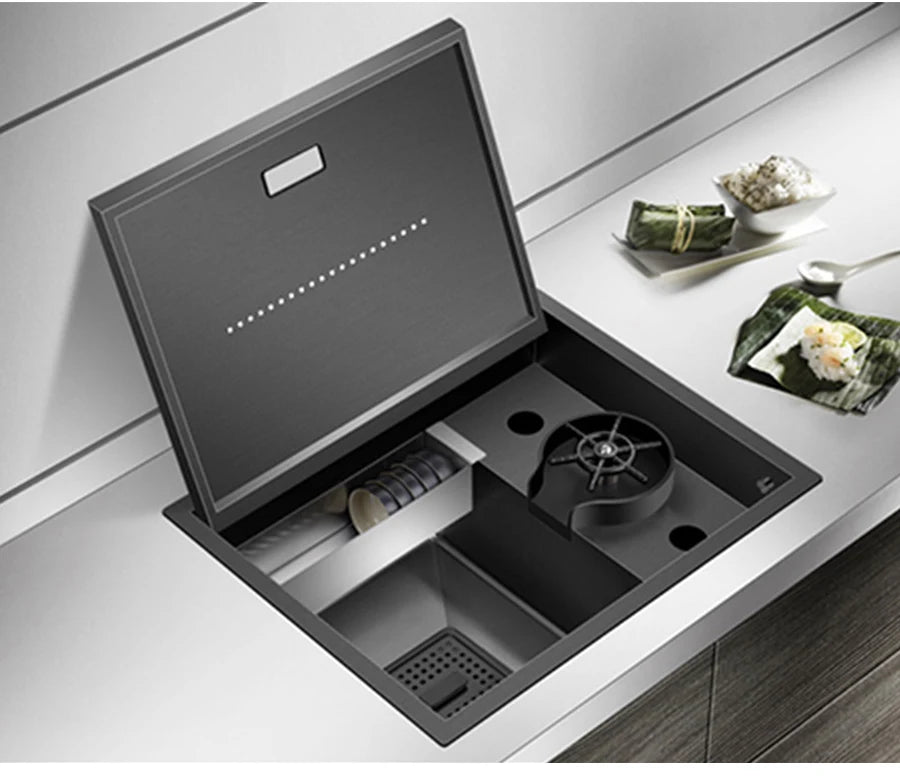 Nanometer Hidden Bar Island kitchen Sink 304 Stainless Steel Flip Cover Hidden Handmade Small Size kitchen Sinks With Cup Rinser