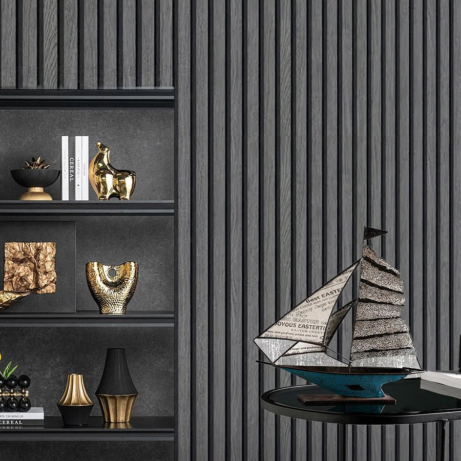 Neue schwarze und graue Gitterimitation Holzmaserung selbstklebende wasserdichte Tapete neue Hintergrundwandtapete im chinesischen Stil