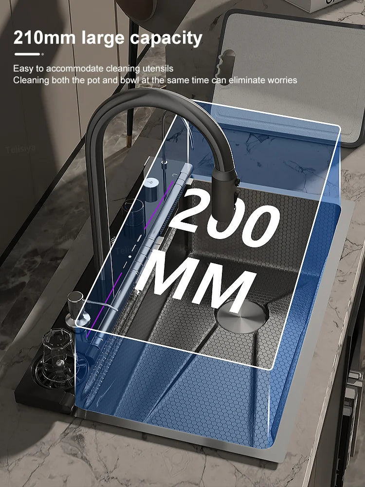 Neue Wasserfall Küchen spüle Edelstahl Multifunktion große Einzels chlitz integrierte Digital anzeige Waschbecken