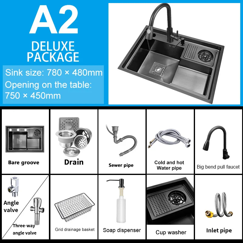 Neues abgestuftes Edelstahlspülbecken für die Küche, multifunktionale Tassenwaschbecken, Geschirrspülbecken, großes Einzelschlitz-Waschbecken