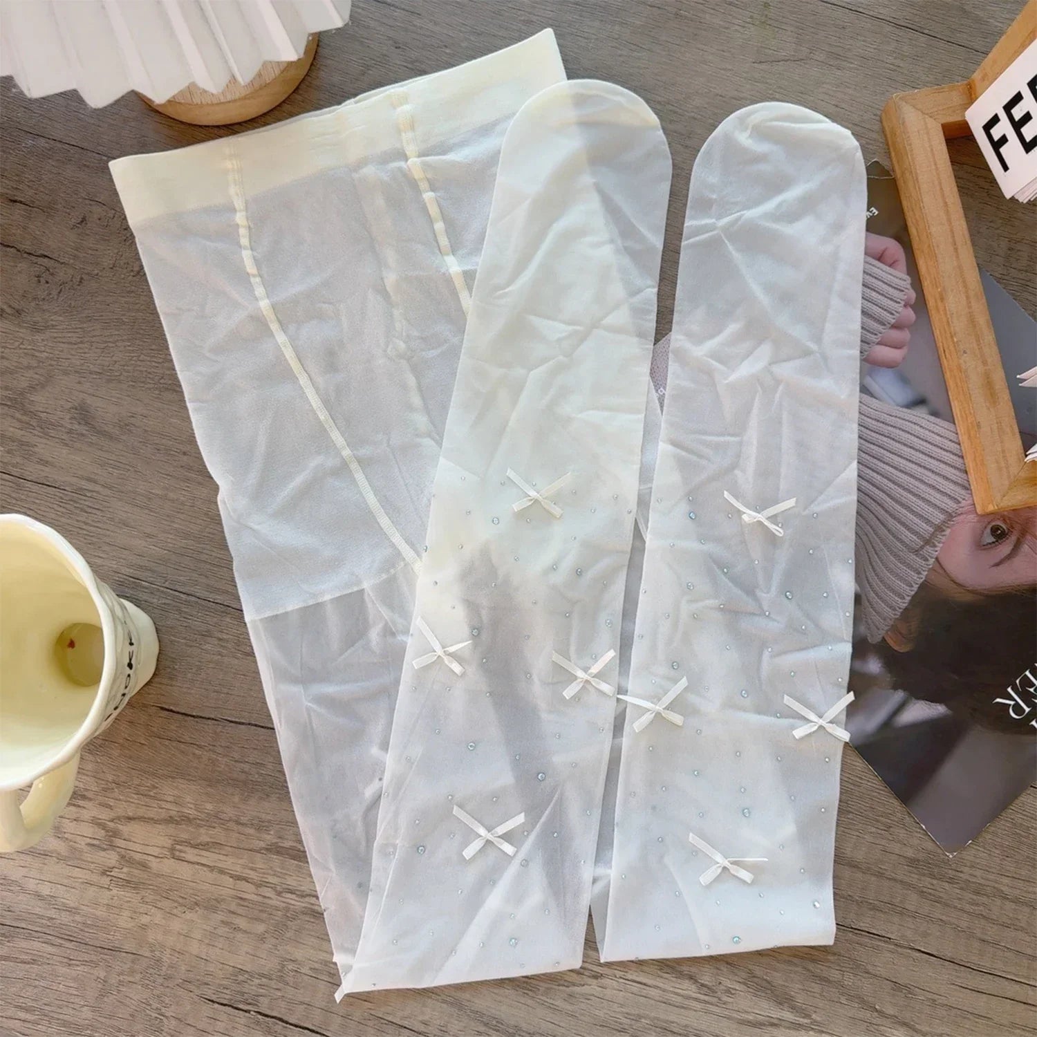 New Lolita Velvet Bowkont Embroidery Pearl Tights Pantyhose Flash Diamond Women Tight JK Style Sweet Girls Kawaii Cute Stockings