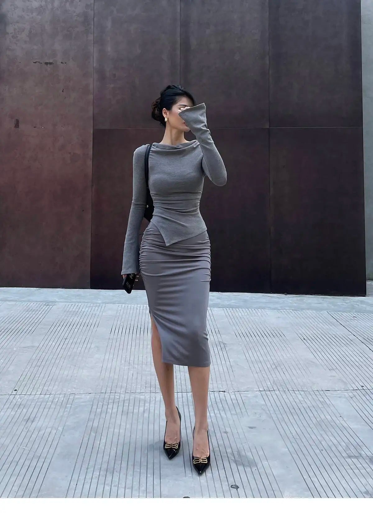 New Spicy Girl One Shoulder Trumpet Long Sleeve T-shirt Female Autumn Slim Sweet Fashion Korean Women Tees Sweet 2025 New 91NV