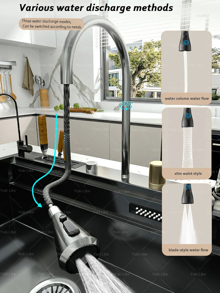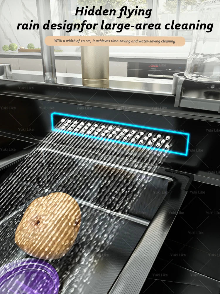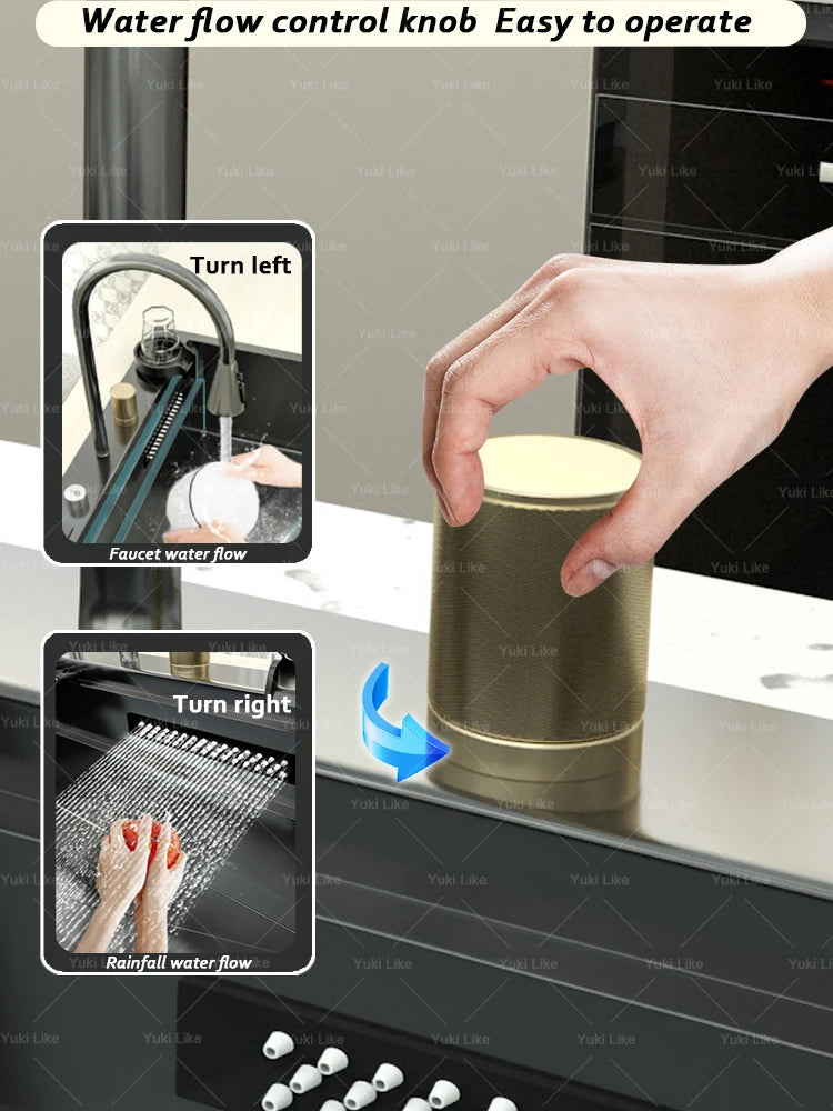 New Stainless Steel Kitchen Sink with Waterfall Large Single Slot Various Multifunctional Sinks Dish and Vegetable Wash Basin
