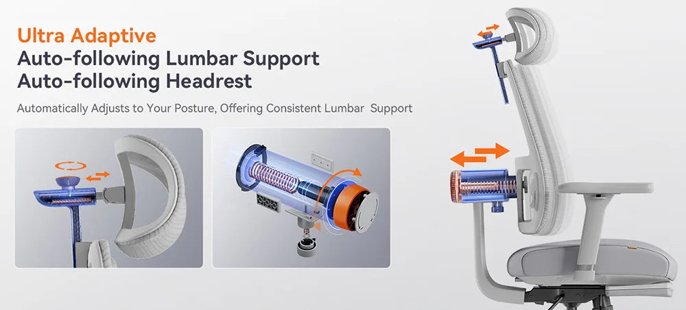 NEWTRAL MagicH-GPRO Ergonomischer Stuhl mit Fußstütze, AutoFollowing-Rückenlehne, Kopfstütze, adaptive Unterrückenstütze, verstellbare Armlehne