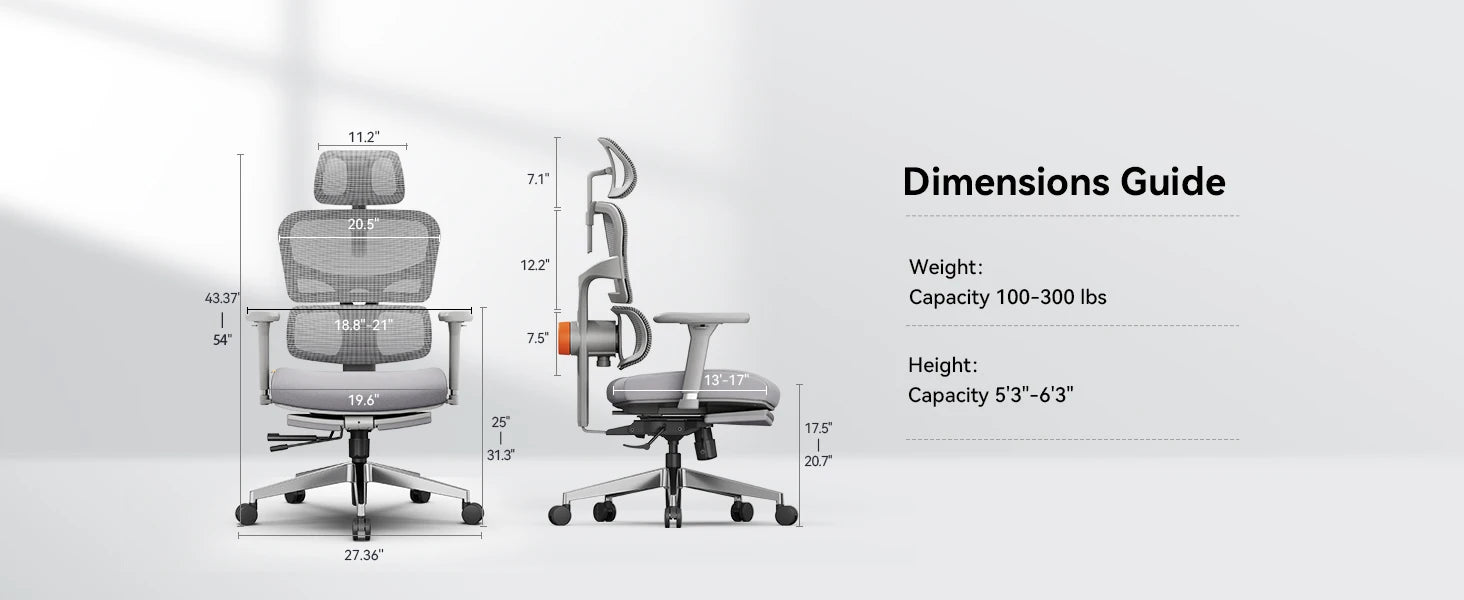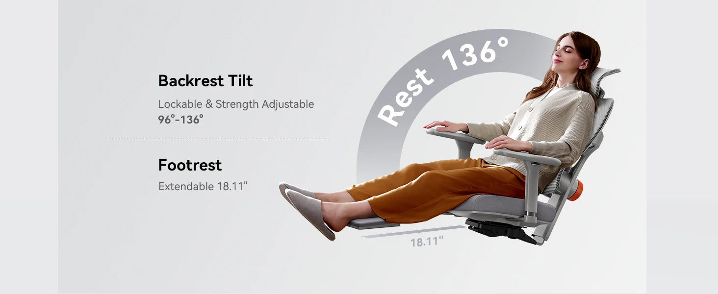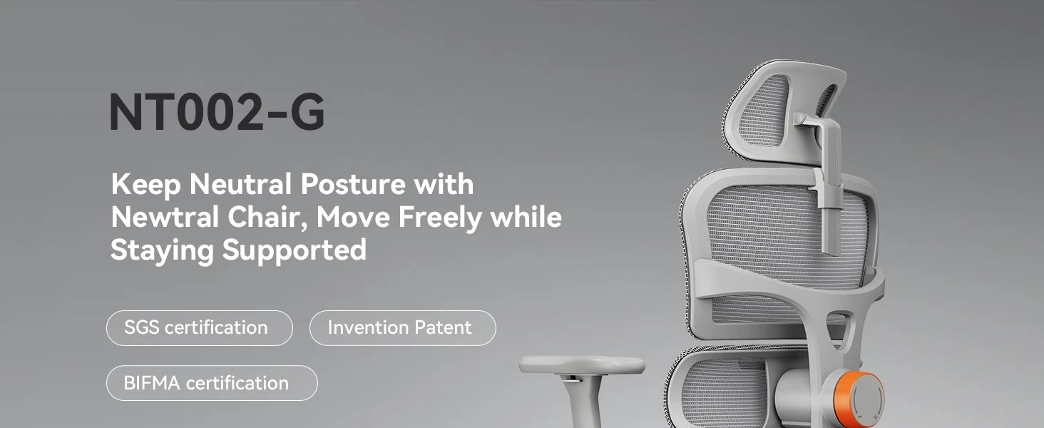 NEWTRAL NT002 Ergonomischer Bürostuhl mit Fußstütze, adaptiver Lordosenstütze, 3D Armlehne und Verstellbare Kopfstütze, Schreibtischstuhl aus Mesh für Büro