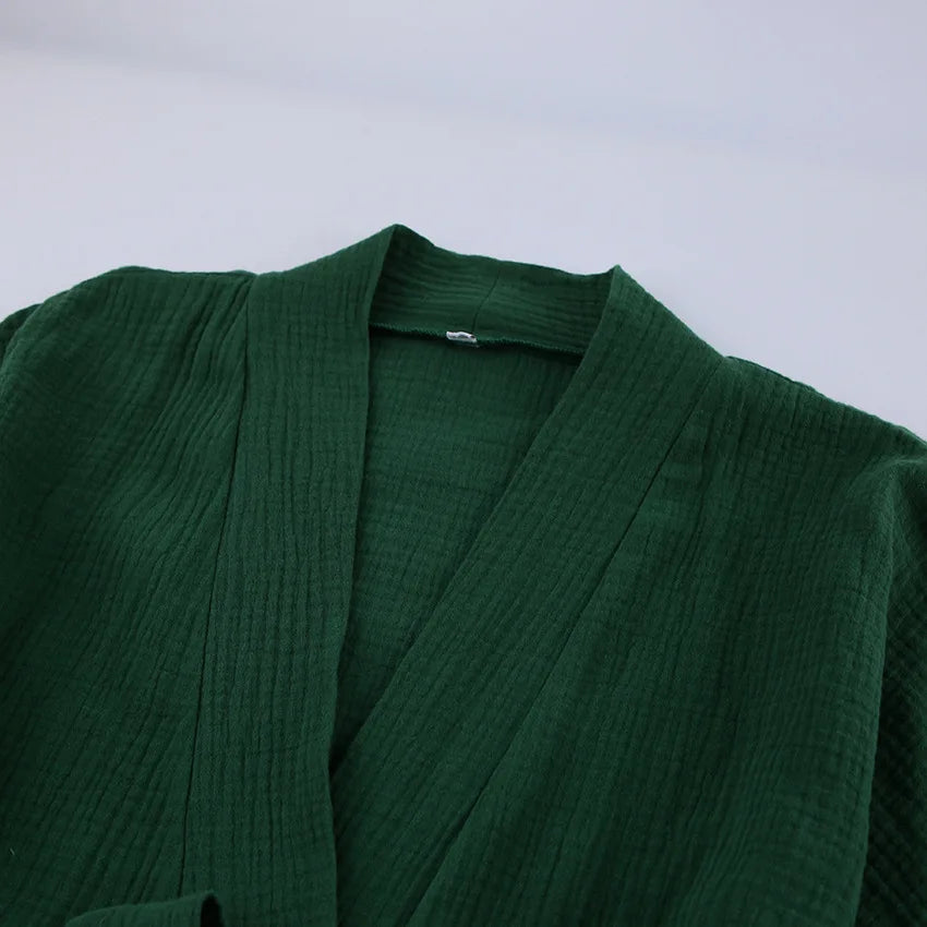 NHKDSASA Kimono Pajamas 2023 New 100% Cotton Crepe Long-Sleeved Trousers Ladies Sleepwear Suit Women's Home Service Mujer