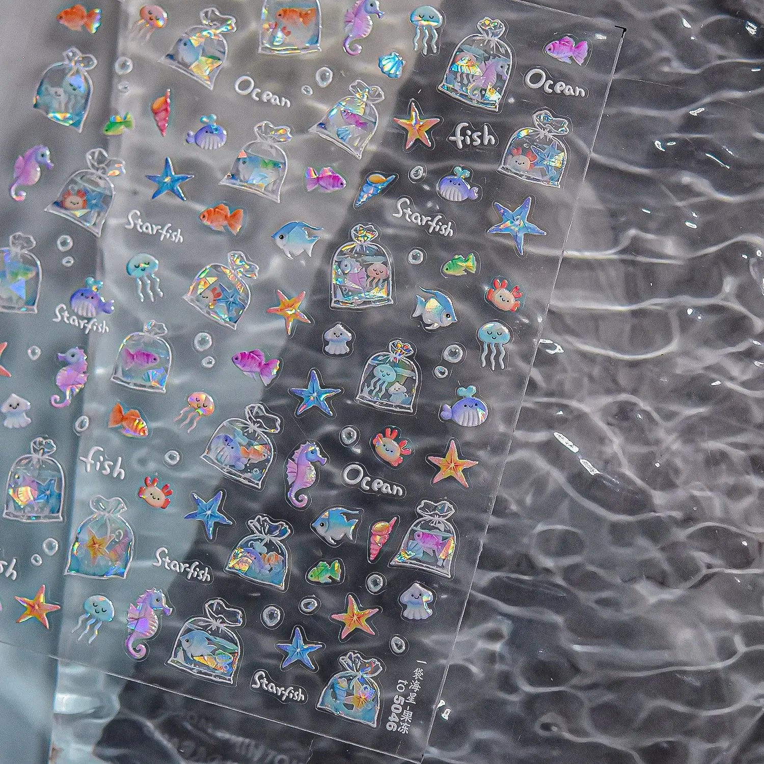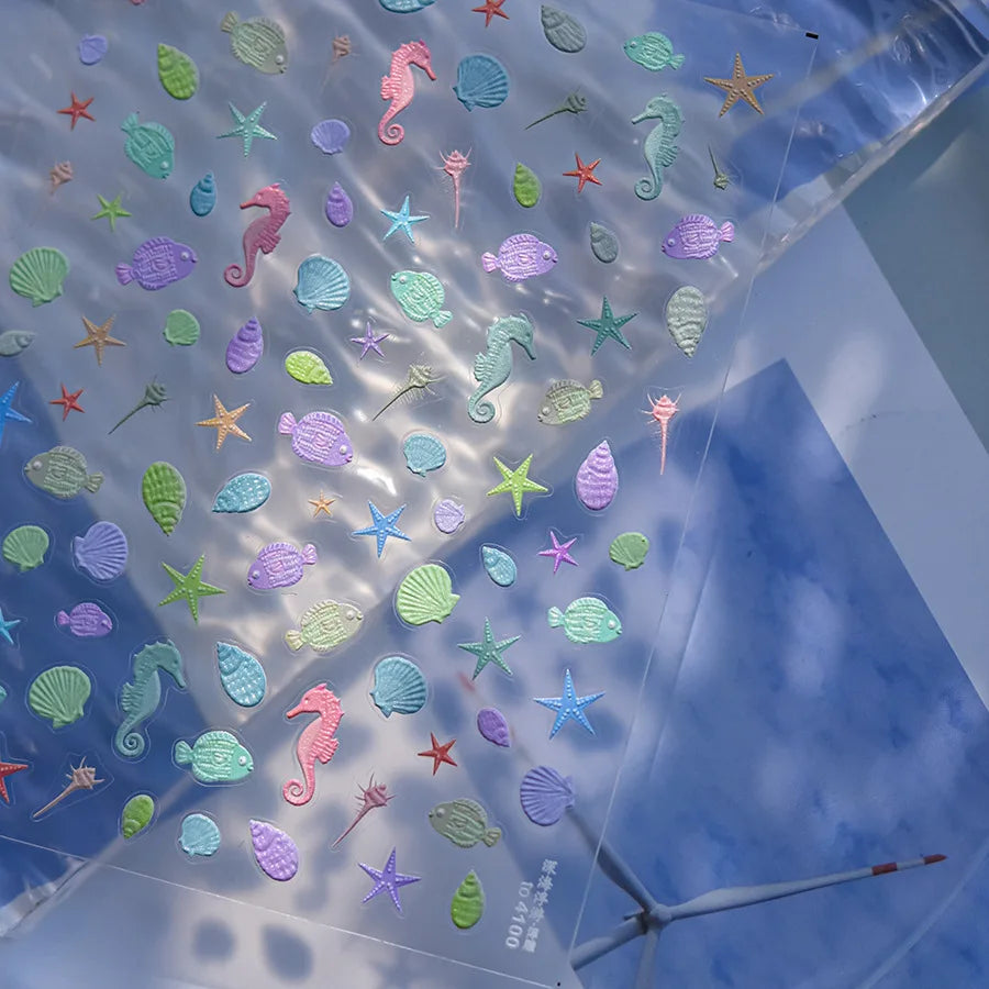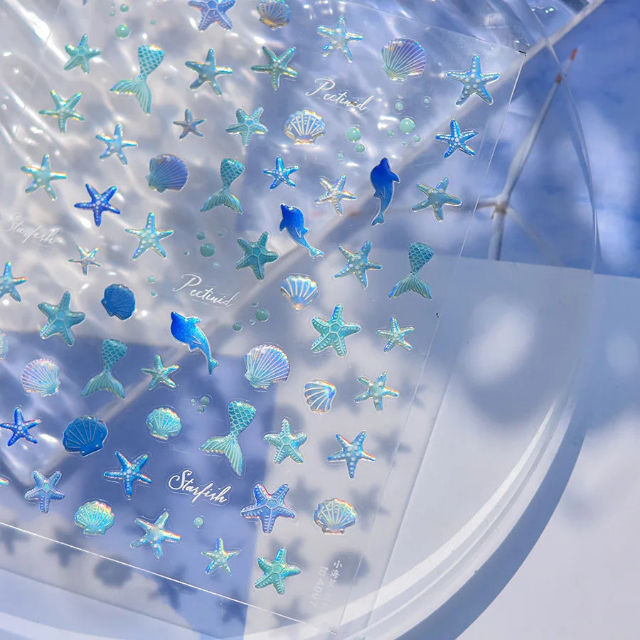 Ocean Theme 5D Nail Sticker Summer Beach Seashells Starfish Conch Scallop Shell Coral Self Adhesive Decoration Manicure Decal