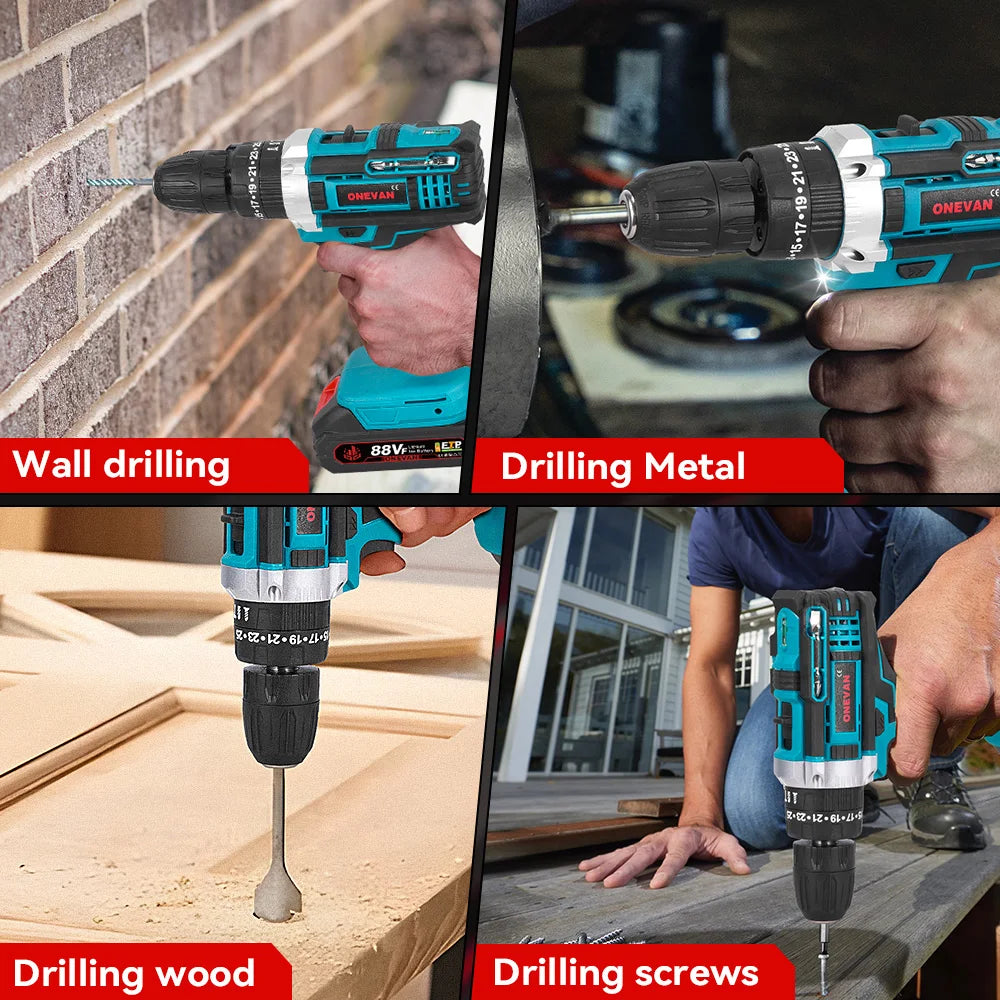 ONEVAN Elektrischer Schlagbohrschrauber, 25 + 3 Drehmoment, multifunktional, 2 Gänge, Akku-Bohrhammer, Elektrowerkzeug für Makita 18 V Akku-Stift
