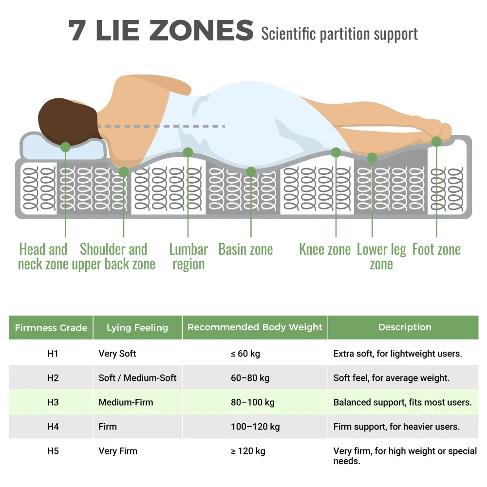 Orthopädische Kaltschaummatratze 90 x 200 cm, Matratze mit 7-Zonen-Taschenfederkernen, mittelfest – OEKO-TEX ® Zertifiziert