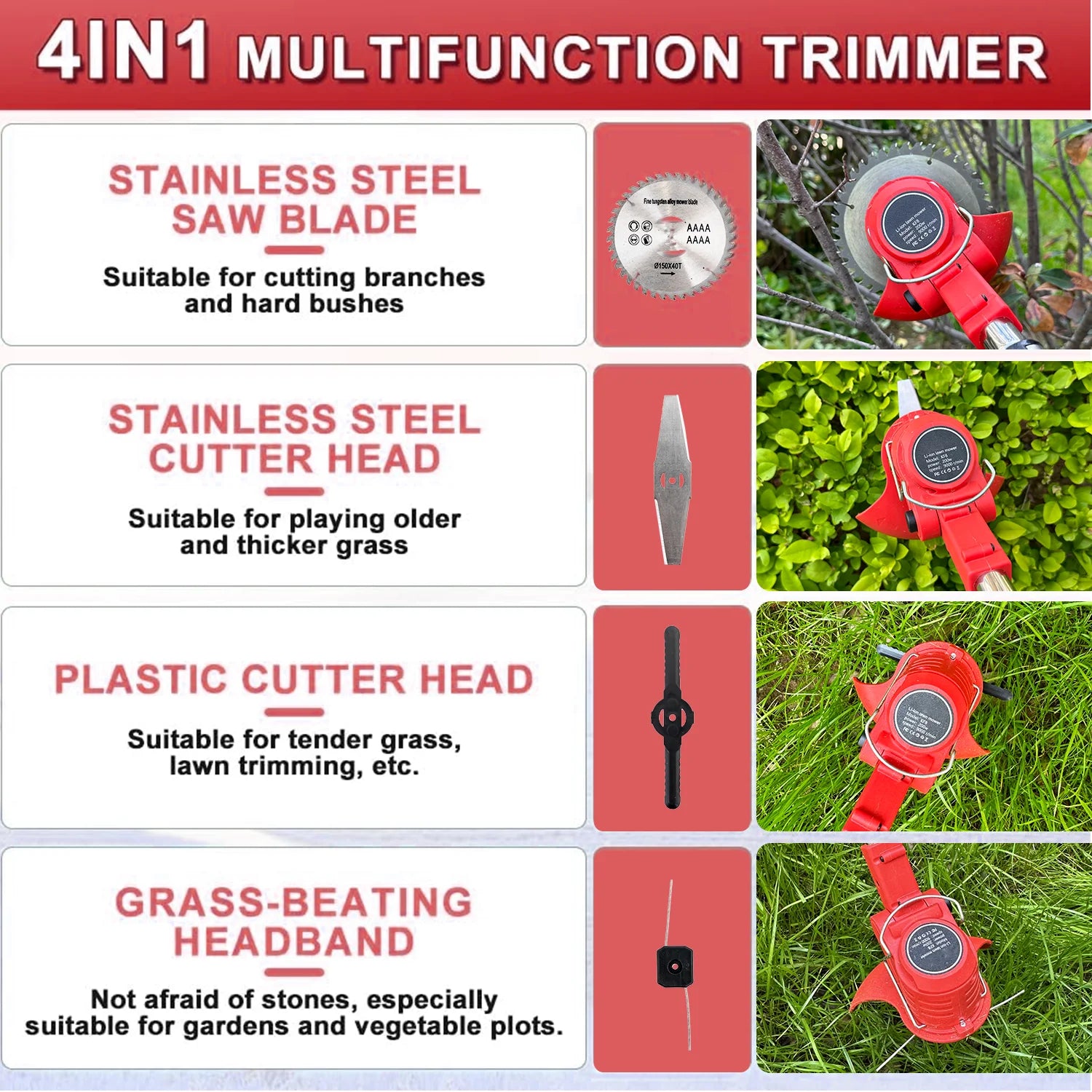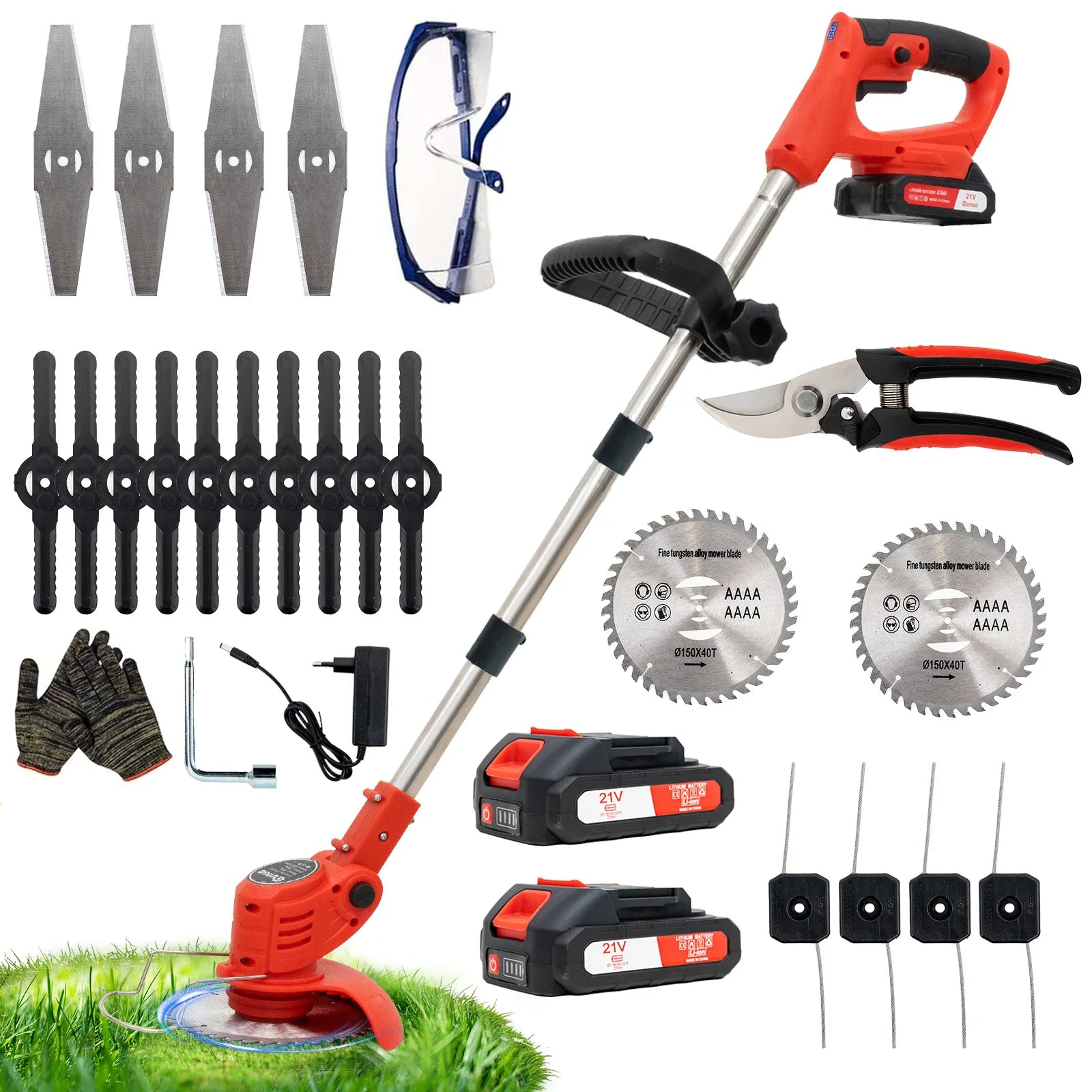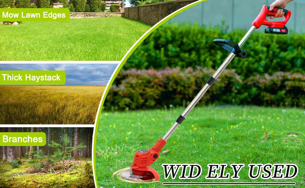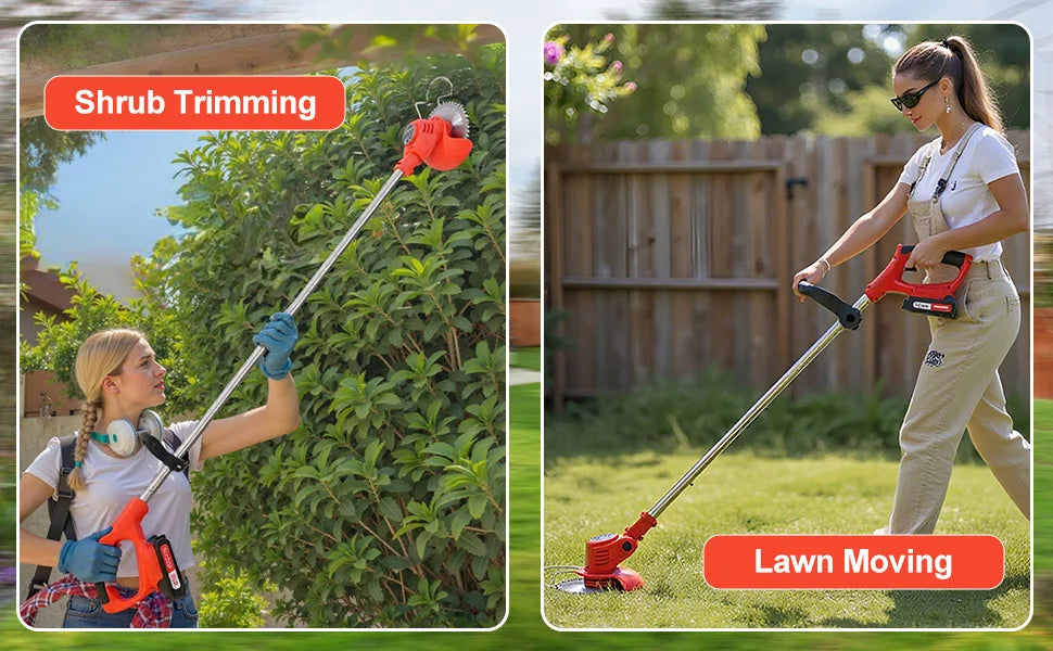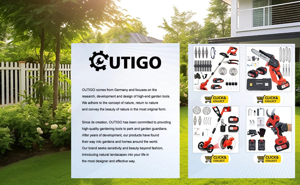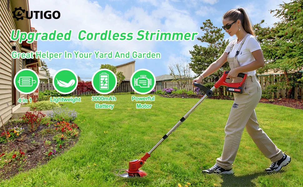 OUTIGO-KF8L schnur loser elektrischer Grass ch neider mit 2 Batterien und 4 Arten von Klingen, zum Mähen von Rasenflächen und Sträuchern im Freien