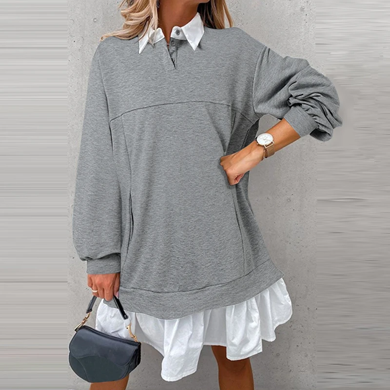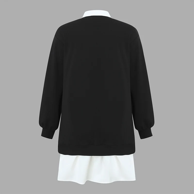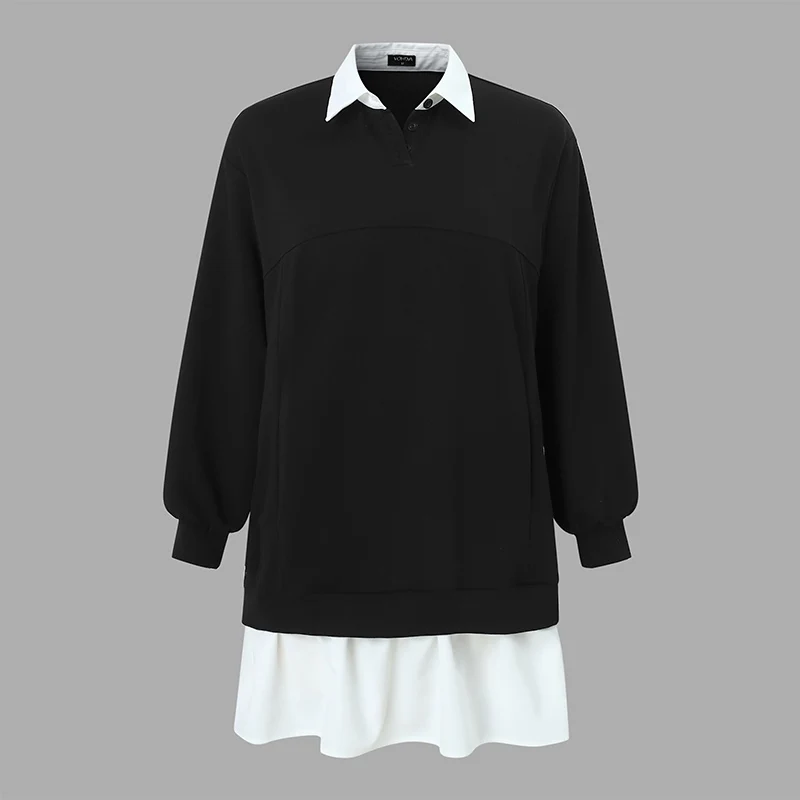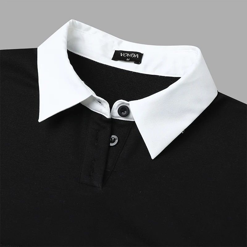 Plus Größe 5XL VONDA Frauen Hoodies Sweatshirts Mode Patchwork Kausalen Revers Kragen Gefälschte Zwei Stück Sweatshirts Lose Lange Jumper