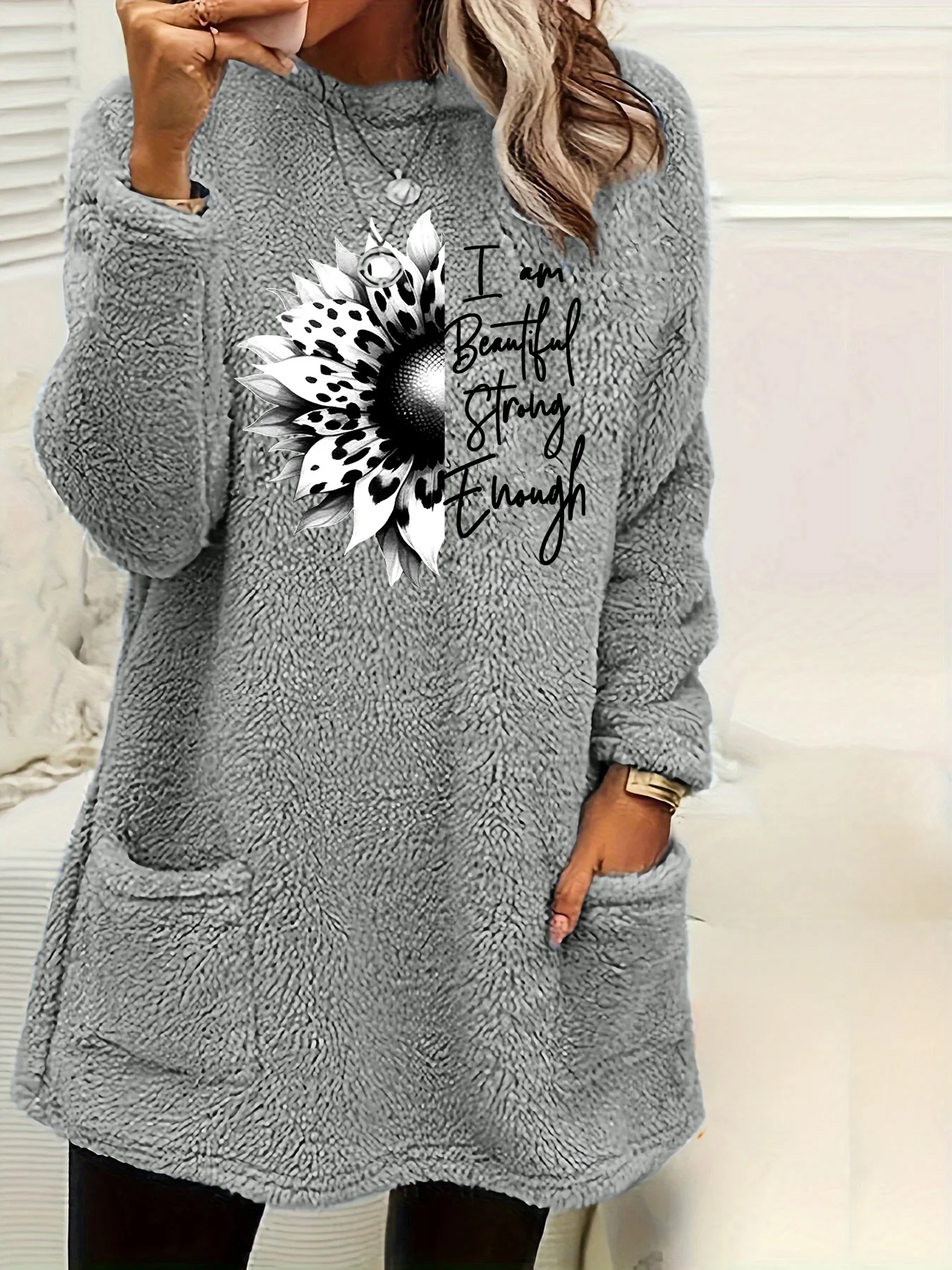 Feature:Womens sweatshirt feature with long sleeve,crewneck pullover,double-faced fleece,loose fit,with pocket,functional pockets are convenient for carrying small items.The loose and slightly longer design can cover your belly and make you look slimmer.