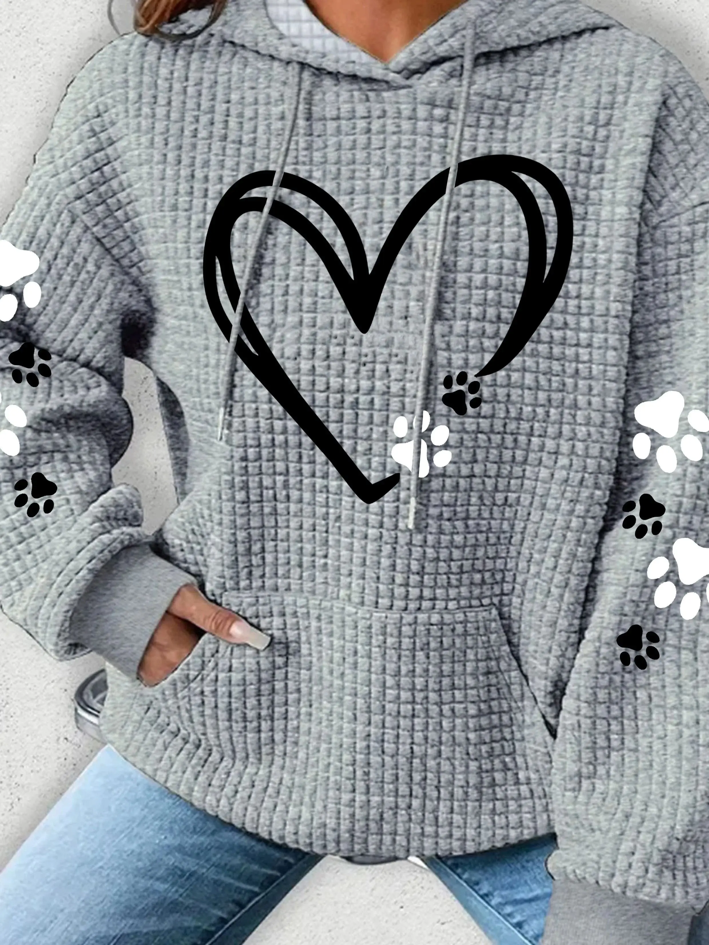 Plus Size Damenbekleidung, Waffelstrick-Oberteile für Damen, Katzenpfote, Liebesherz, bedruckt, Oversize-Kapuzenpullover für Damen mit Taschen-Sweatshirt