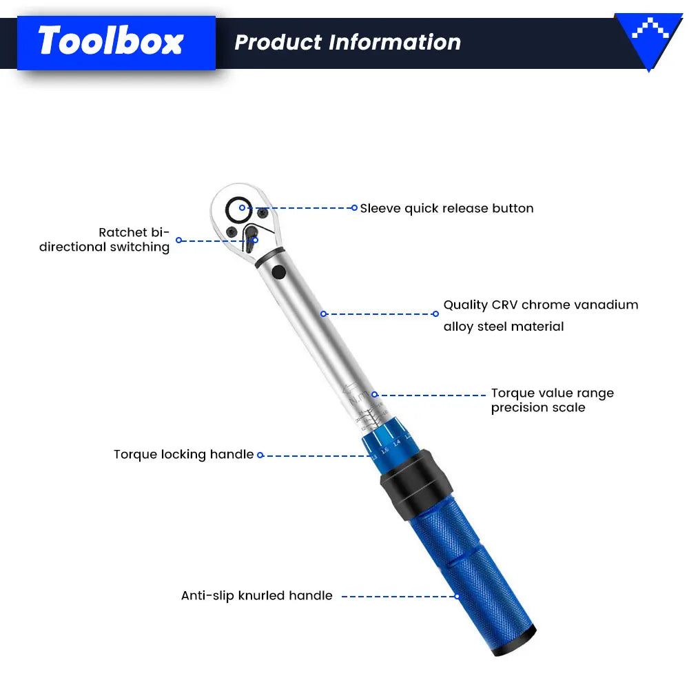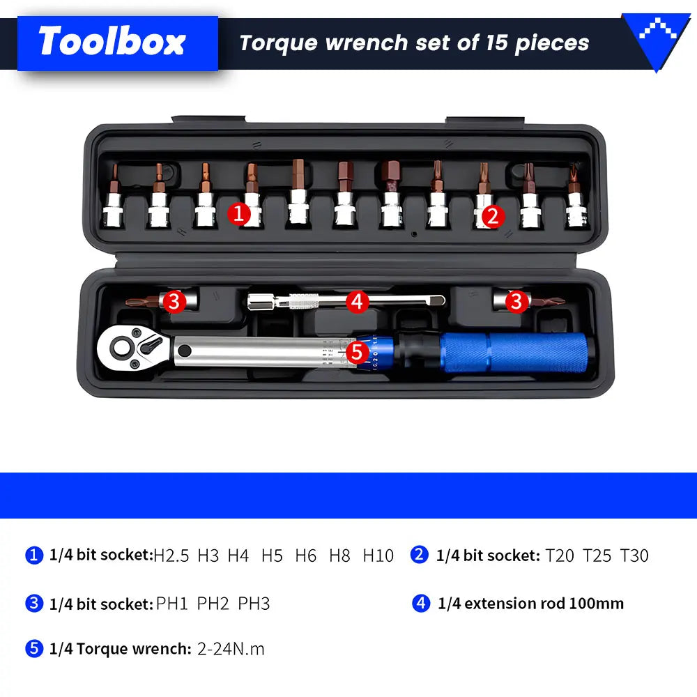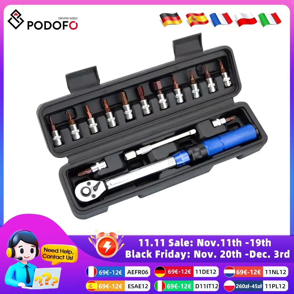 Podofo Hochpräzises Drehmomentschlüssel-Set, 2–24 NM, Einstellung, Dual-Richtungs-Ratsche mit für Auto-Motorrad-Fahrrad-Wartungswerkzeug