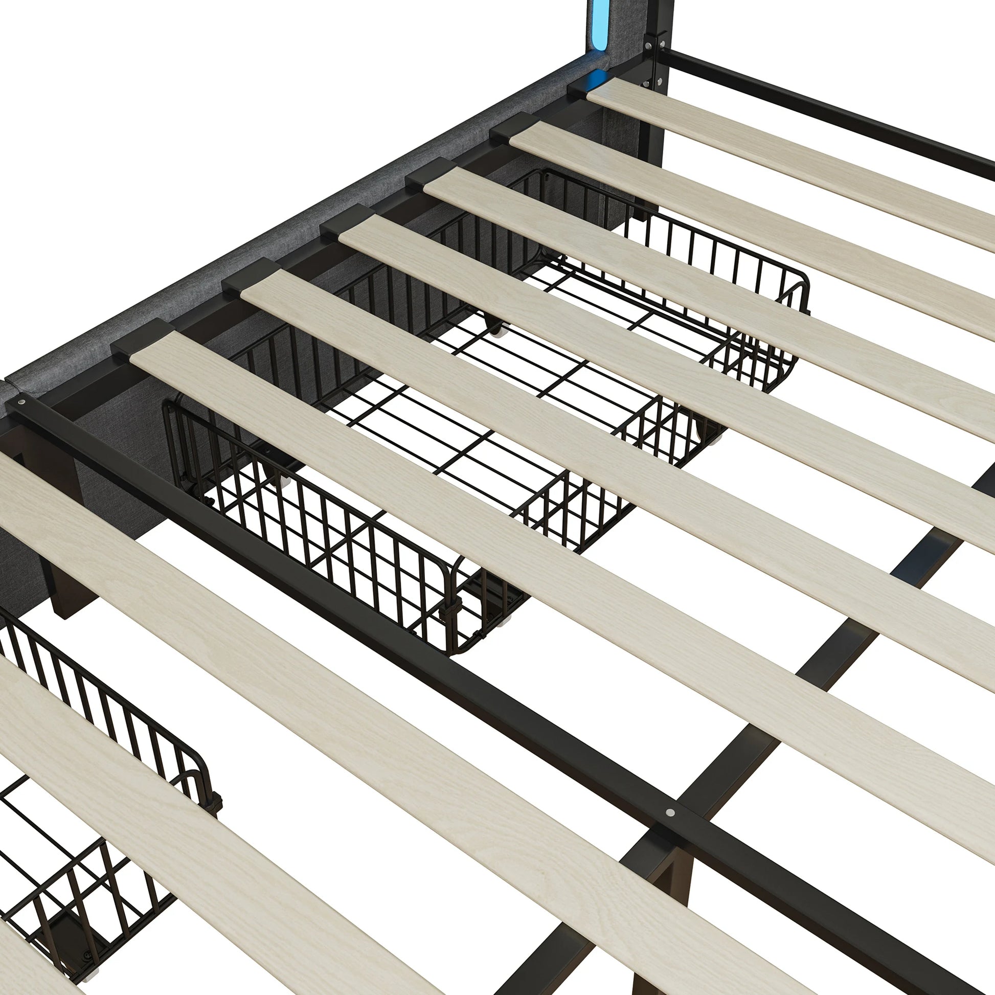 Polsterbett 140x200 cm,LED Doppelbett mit 4 Schubladen und Lattenrost,Kopfteil mit stauraum und USB-Ladefunktion,Bettgestell