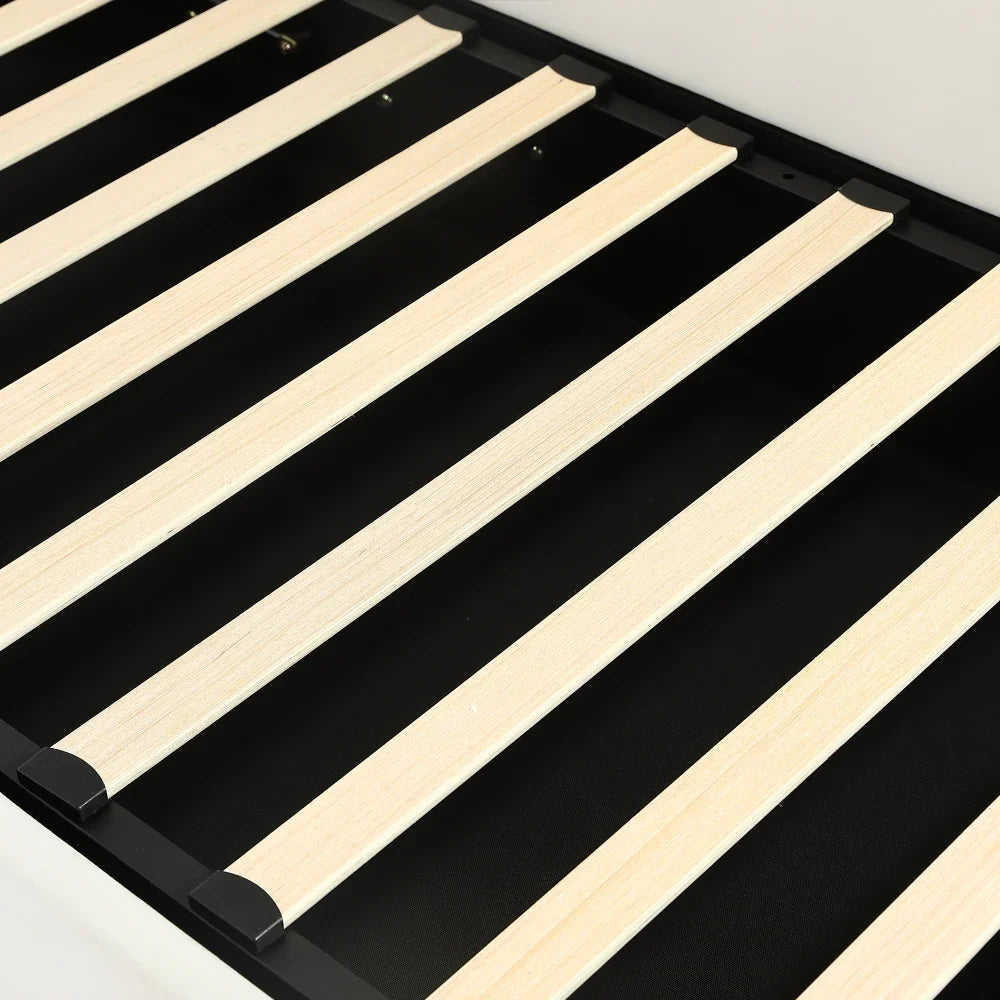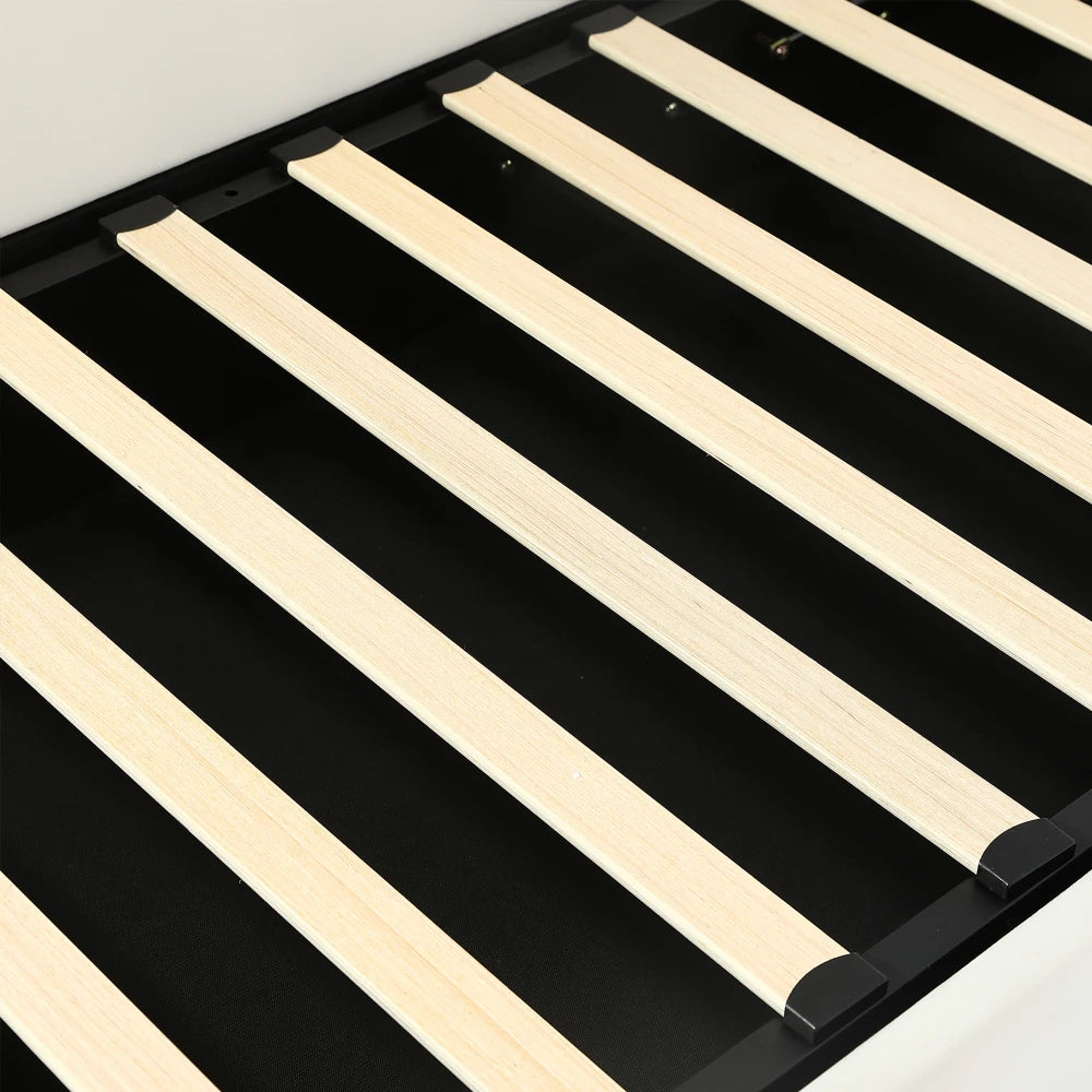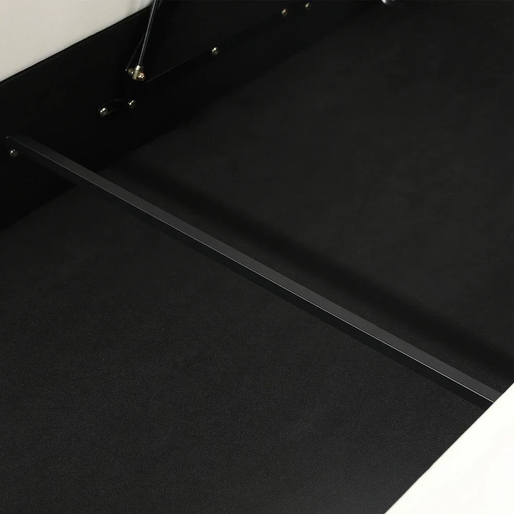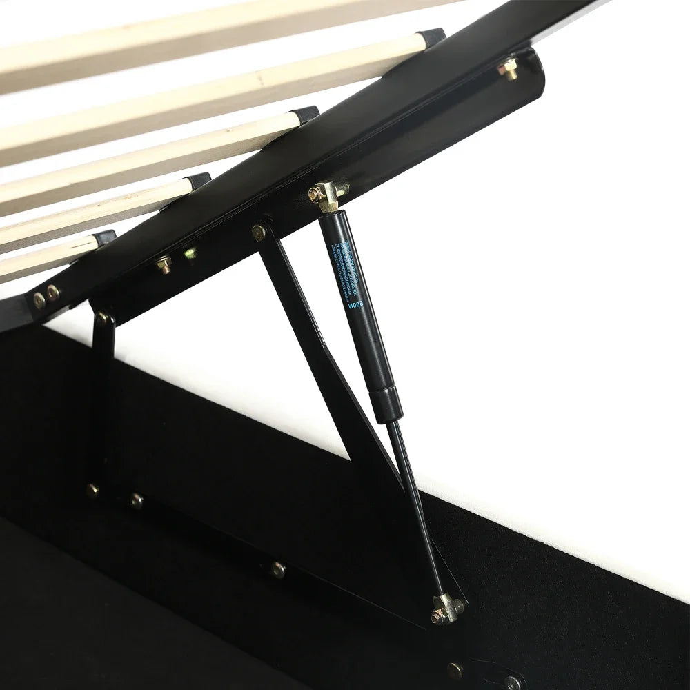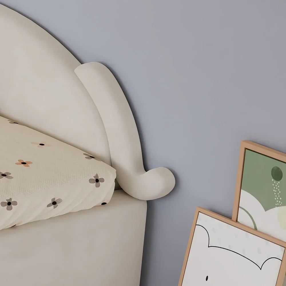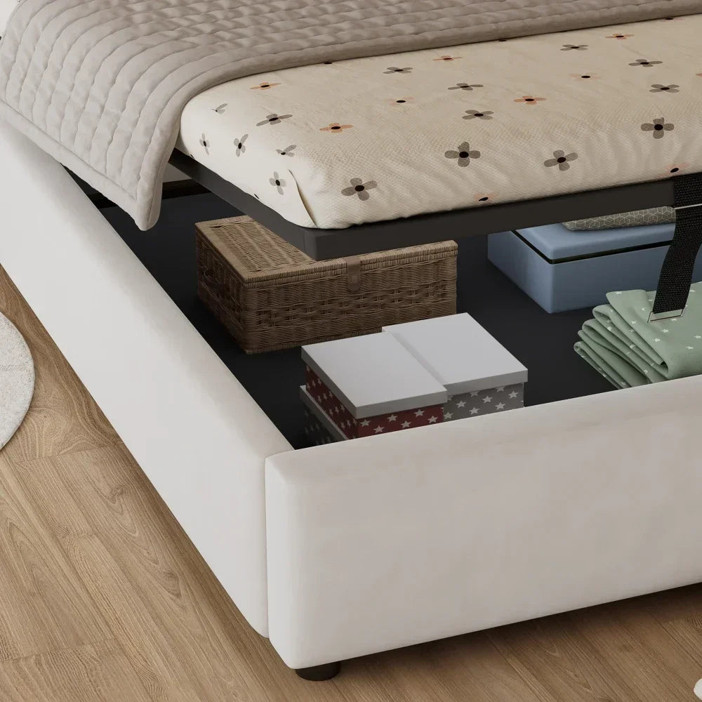 Polsterbett, Einzelbett, süßes Katzendesign, hydraulisches Bett mit Stauraum und Gürtelgriffen, stabiler Gitterrost, 90 x 200 cm